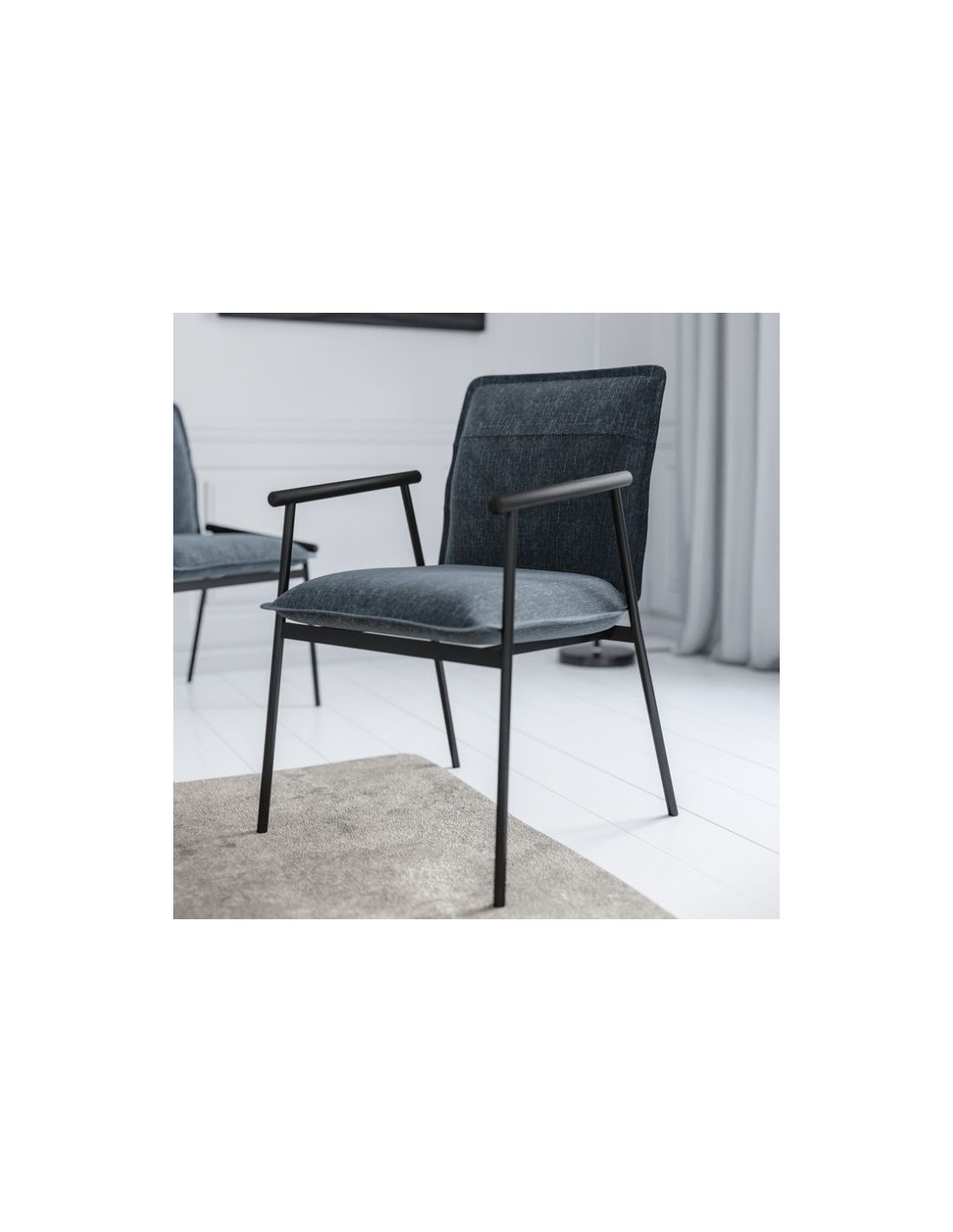 Πολυθρόνα με σώμα από μεταλλικό σκελετό, επενδυμένο με αφρώδη υλικά, ξύλινες μασίφ λεπτομέρειες στα μπράτσα και μεταλλικά πόδια.