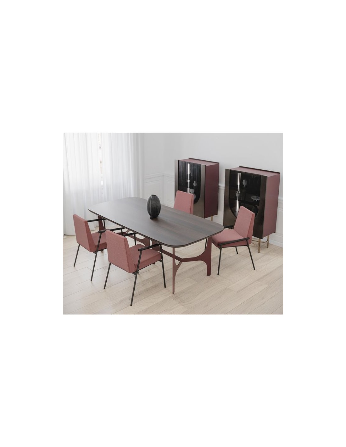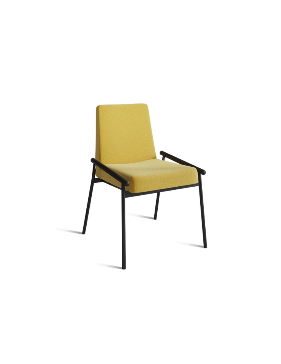 Καρέκλα με σώμα από καλουπωτό αφρό πολυουρεθάνης, ξύλινες μασίφ λεπτομέρειες στα μπράτσα και μεταλλικά πόδια.