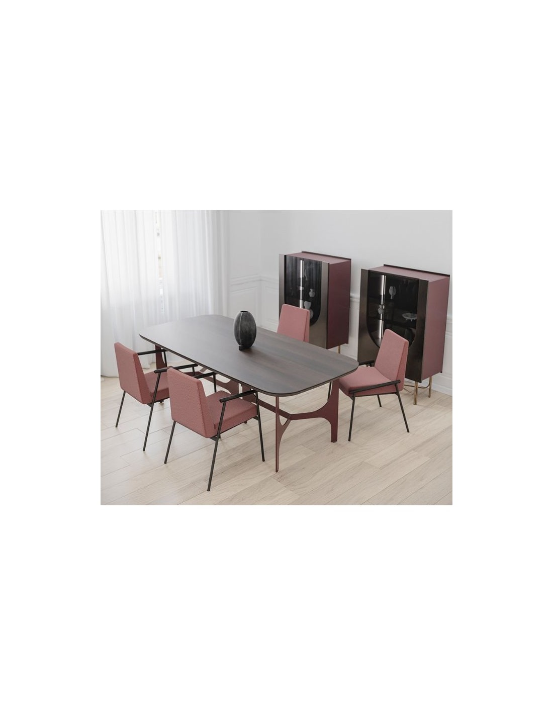 Πολυθρόνα με σώμα από καλουπωτό αφρό πολυουρεθάνης, ξύλινες μασίφ λεπτομέρειες στα μπράτσα και μεταλλικά πόδια.