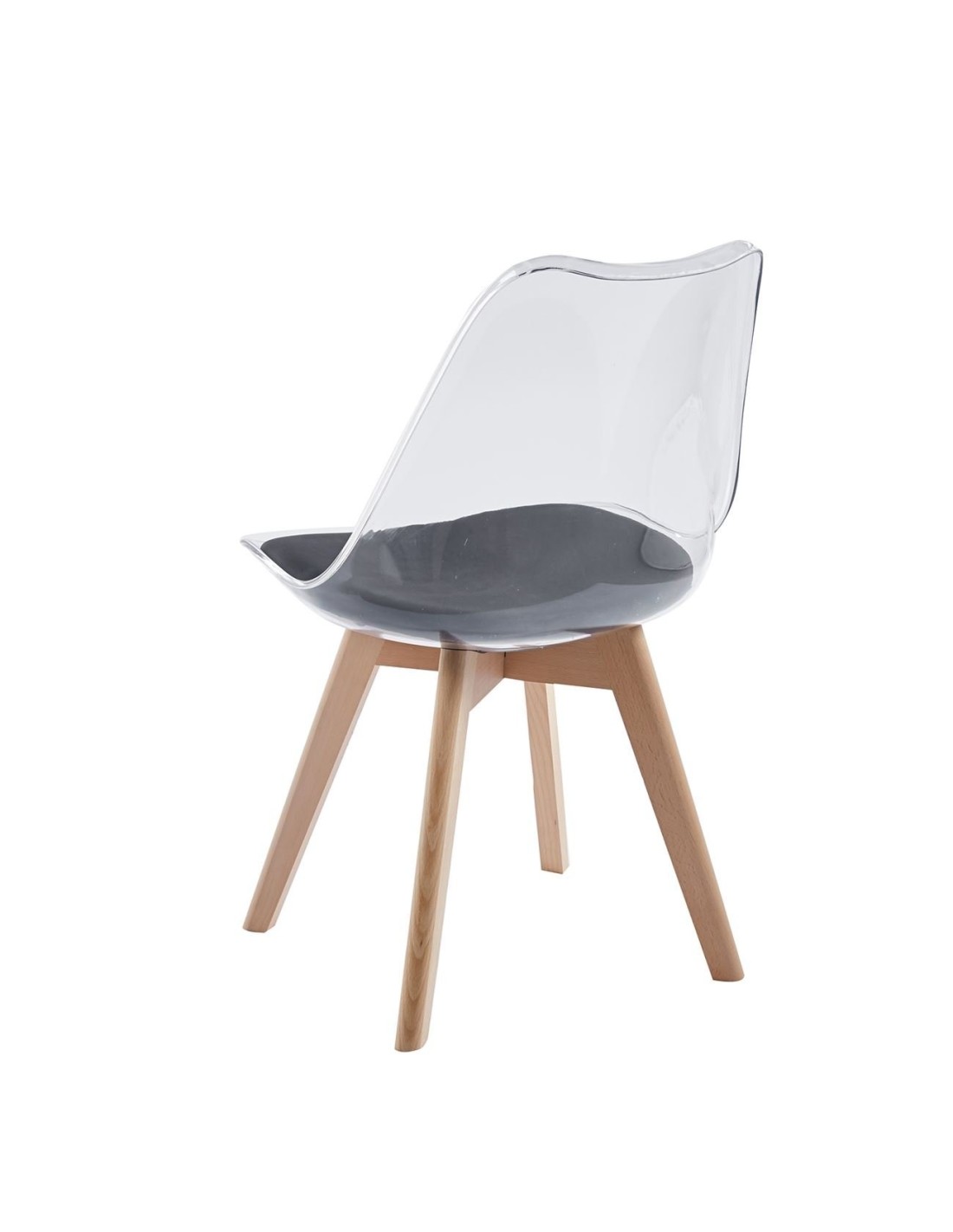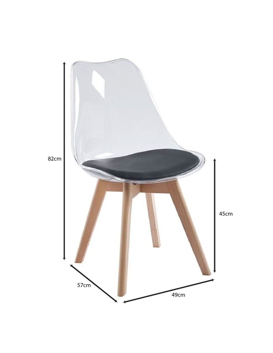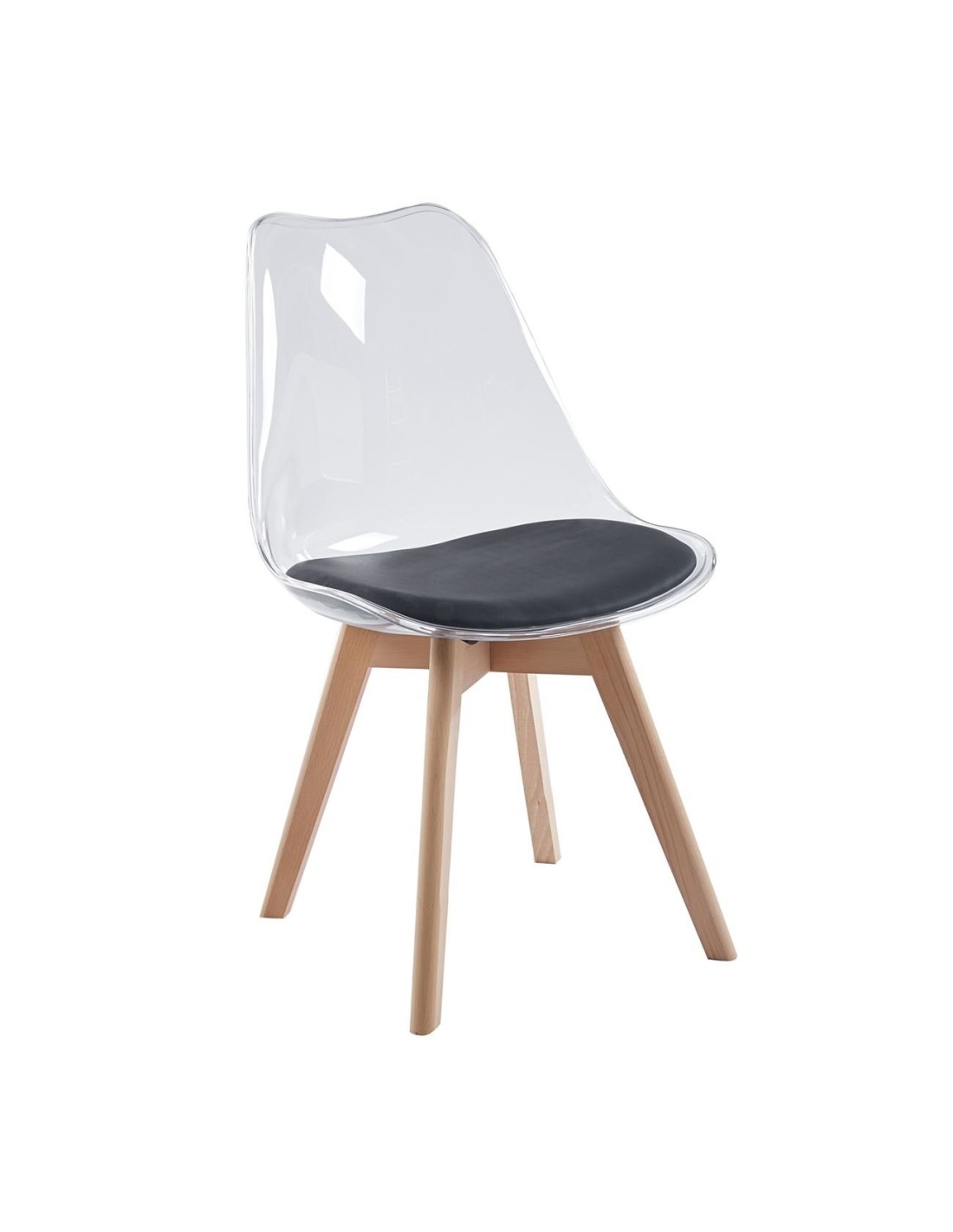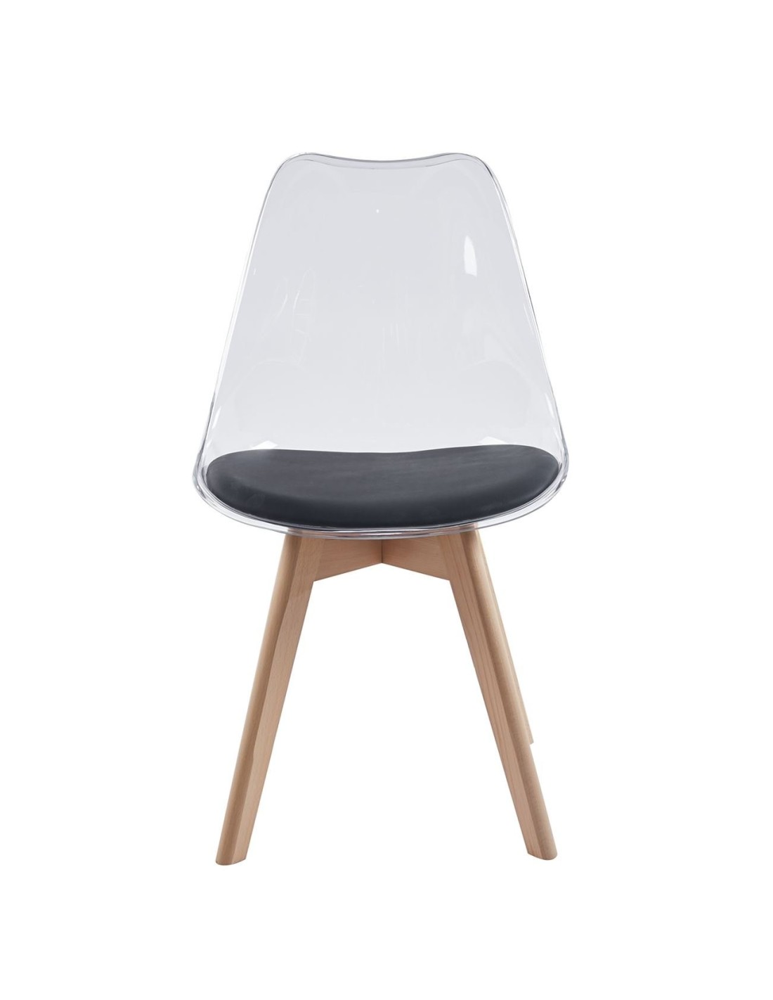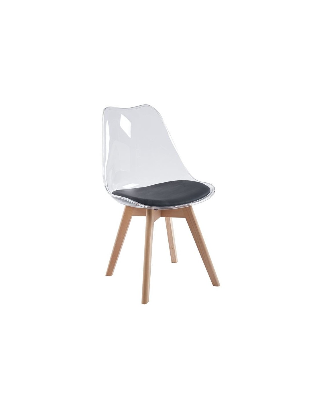 MARTIN Καρέκλα Ξύλο, PET Clear, PU Μαύρο, Μονταρισμένη Ταπετσαρία