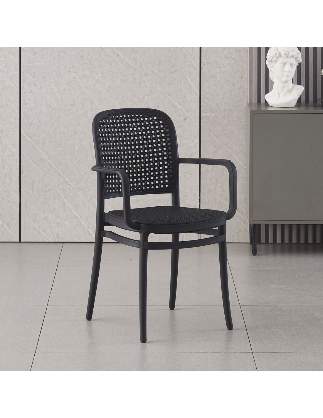 FLORENCE Πολυθρόνα PP Μαύρο, PP Rattan Μαύρο, Στοιβαζόμενη