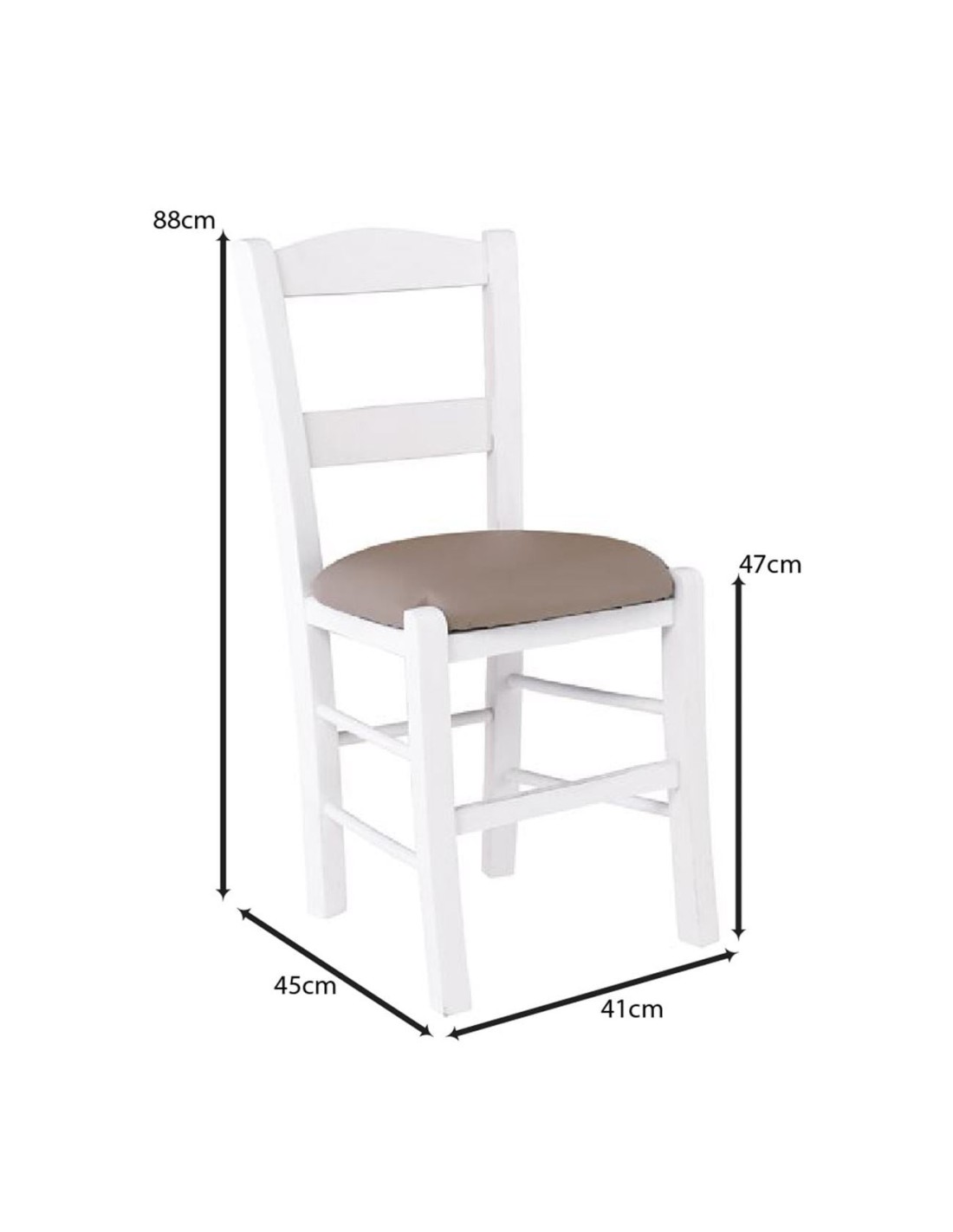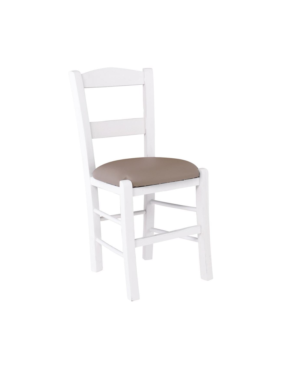 ΣΥΡΟΣ Καρέκλα Οξιά Βαφή Εμποτισμού Λάκα Άσπρο, Κάθισμα Pu Cappuccino