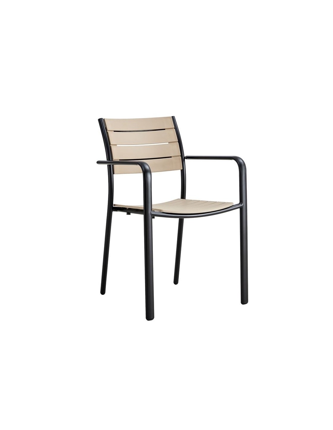 SAGA Πολυθρόνα Στοιβαζόμενη, Μέταλλο Βαφή Μαύρο, PP-UV Tortora
