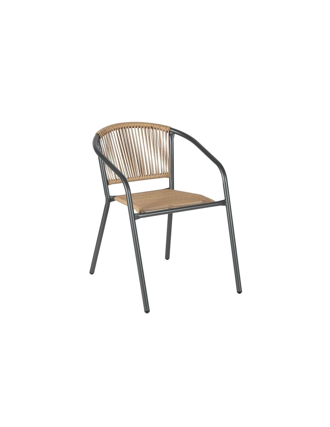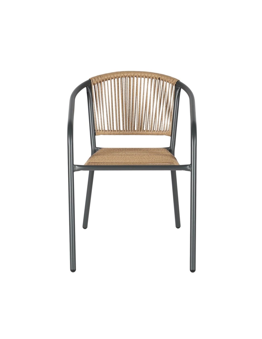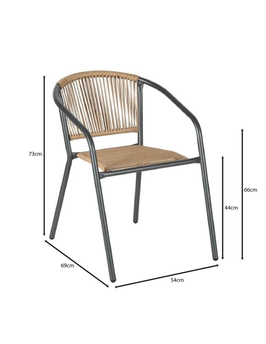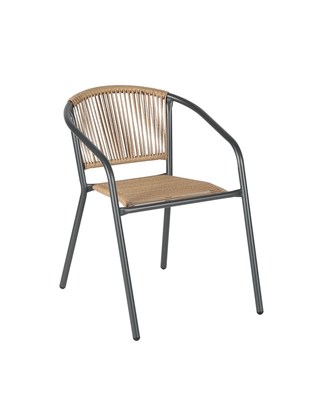 PATTY Πολυθρόνα Στοιβαζόμενη Κήπου, Μέταλλο Βαφή Ανθρακί, PE Rattan Φυσικό