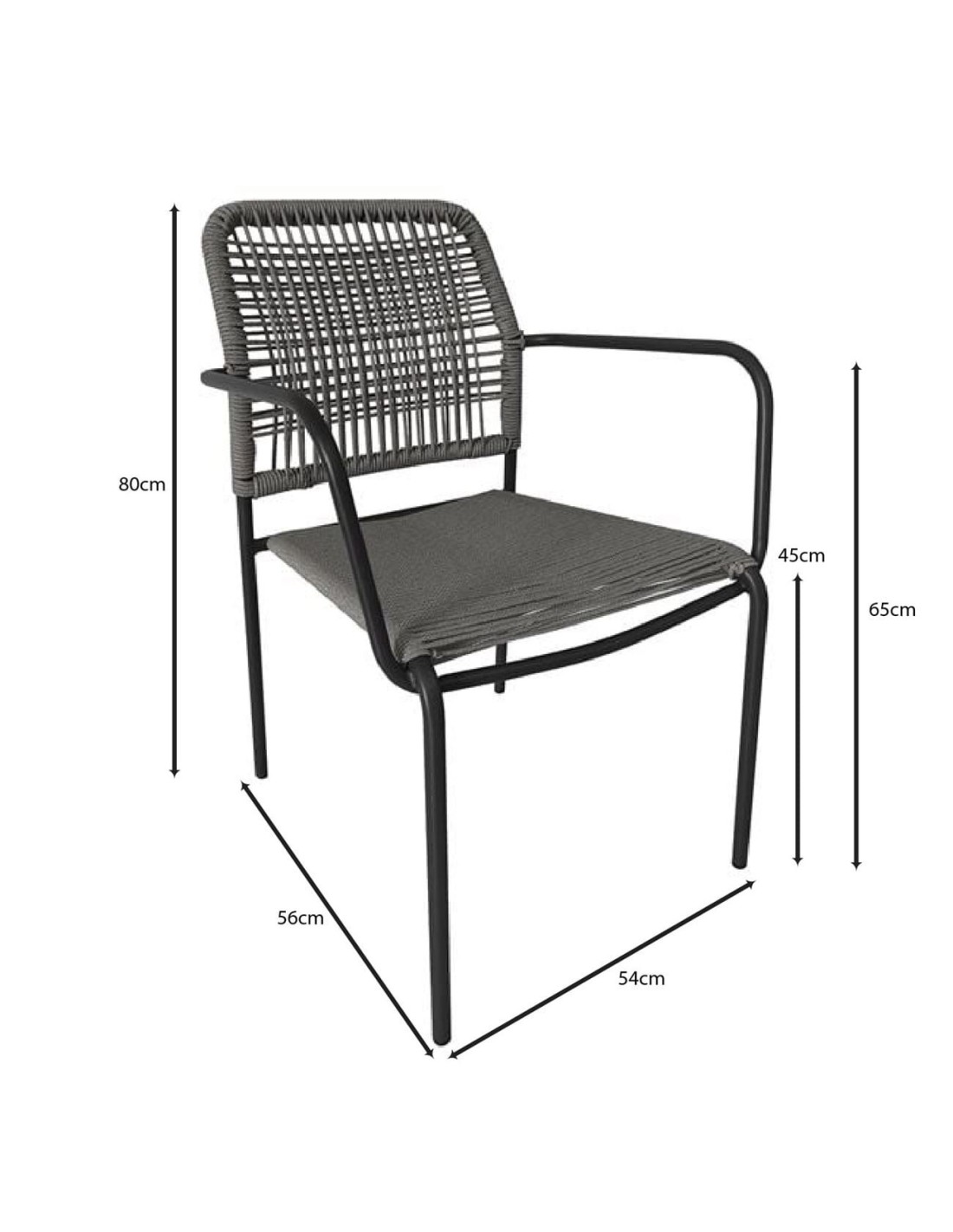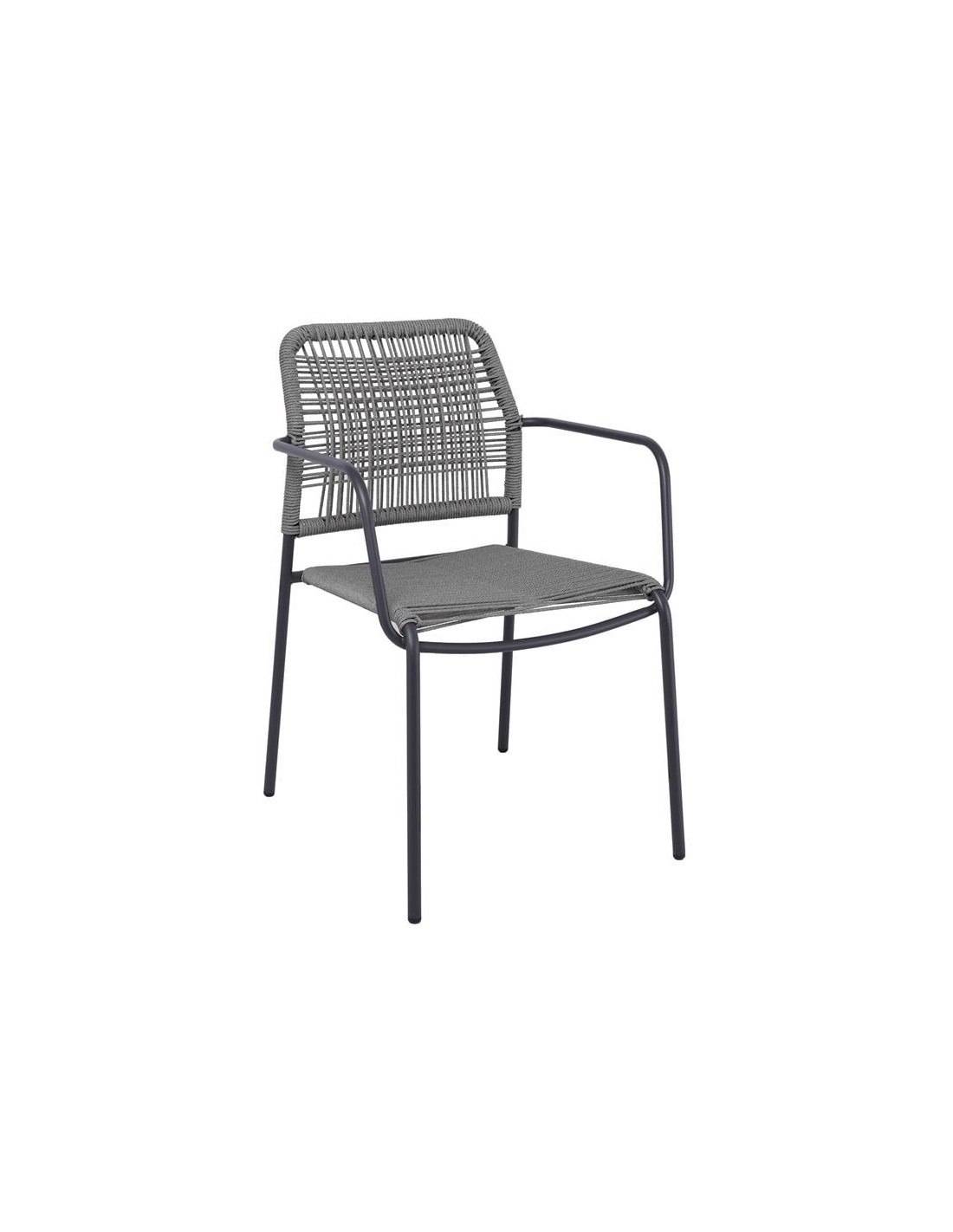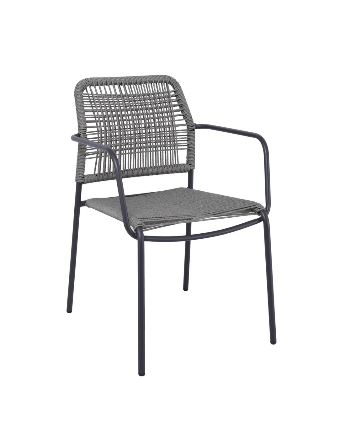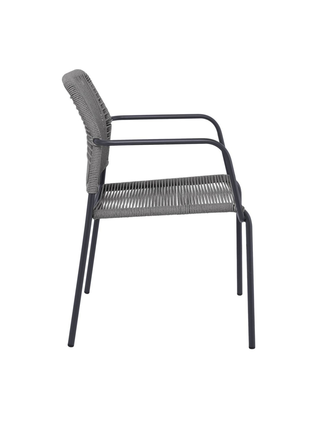 LUIGI Πολυθρόνα Βεράντας-Κήπου Μέταλλο Βαφή Ανθρακί, Rope Wicker Γκρι, Στοιβαζόμενη