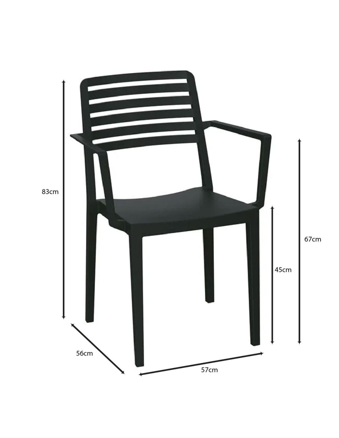 NOLA Πολυθρόνα Τραπεζαρίας Κήπου Στοιβαζόμενη, PP - UV Protection, Απόχρωση Μαύρο