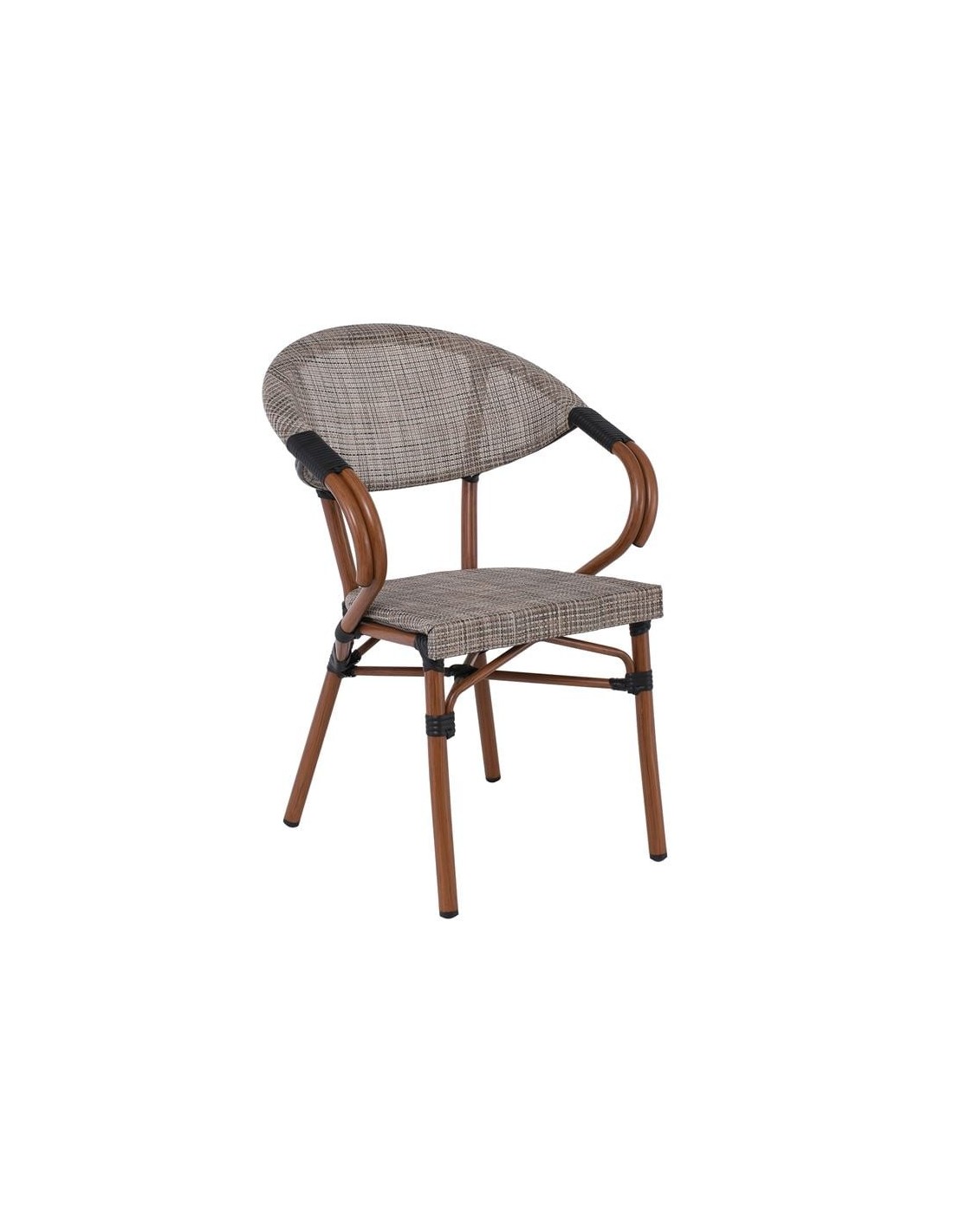 COSTA Πολυθρόνα Dining Αλουμινίου, Απόχρωση Καρυδί Textilene Μπεζ