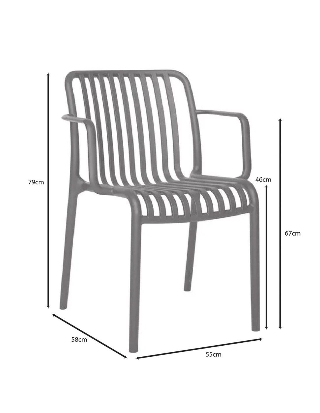 MODA-H Πολυθρόνα Στοιβαζόμενη, PP - UV Protection Απόχρωση Ανθρακί