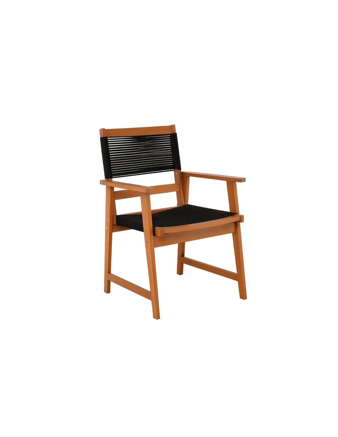 SPRING Dining Πολυθρόνα Βεράντας - Κήπου, Ξύλο Ακακία Φυσικό, Rope Wicker Μαύρο