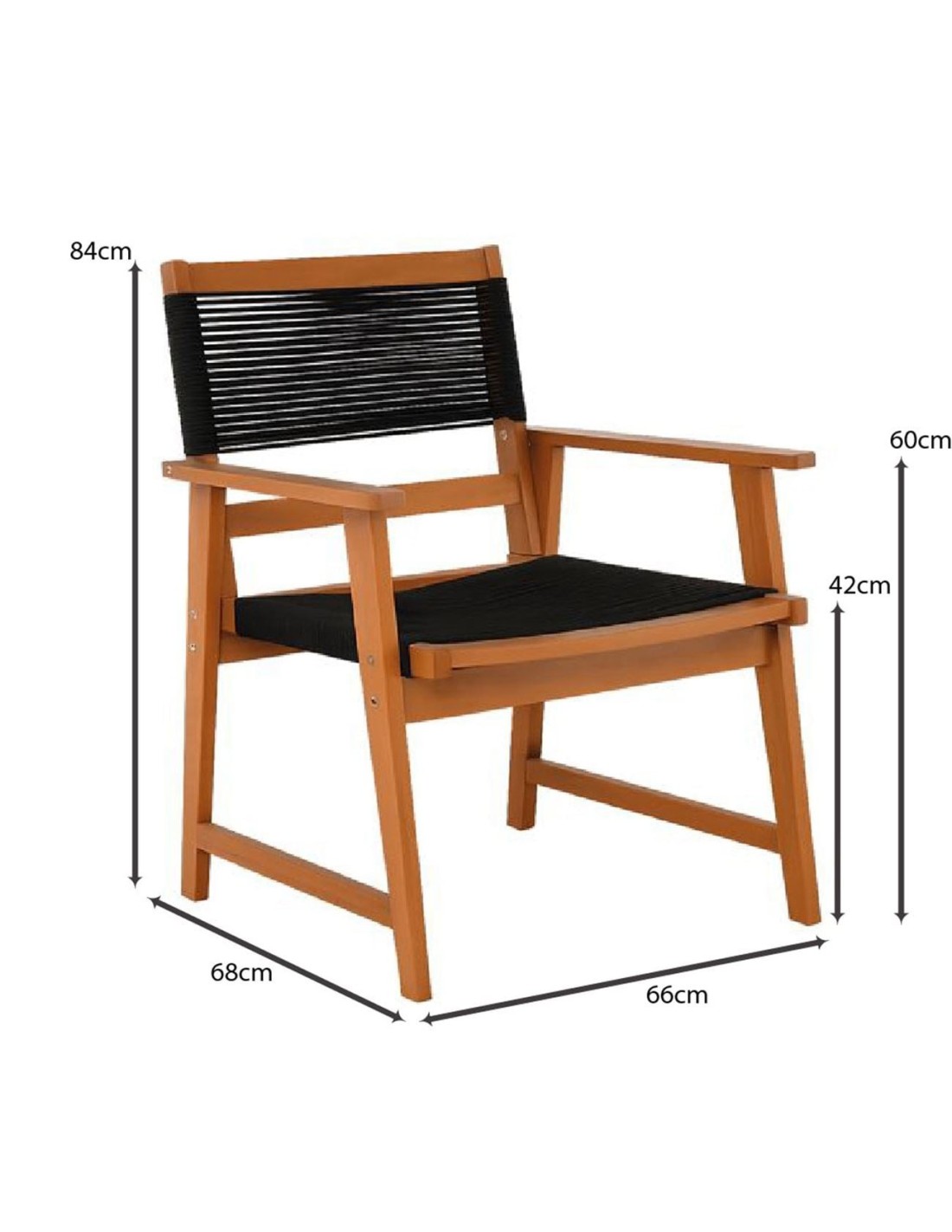 SPRING Living Πολυθρόνα Βεράντας - Κήπου, Ξύλο Ακακία Φυσικό, Rope Wicker Μαύρο