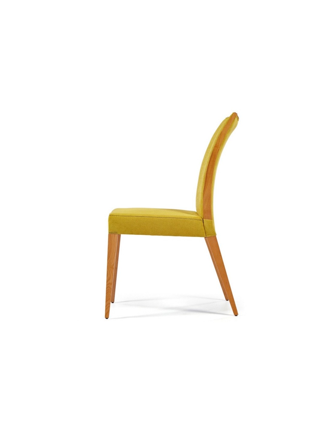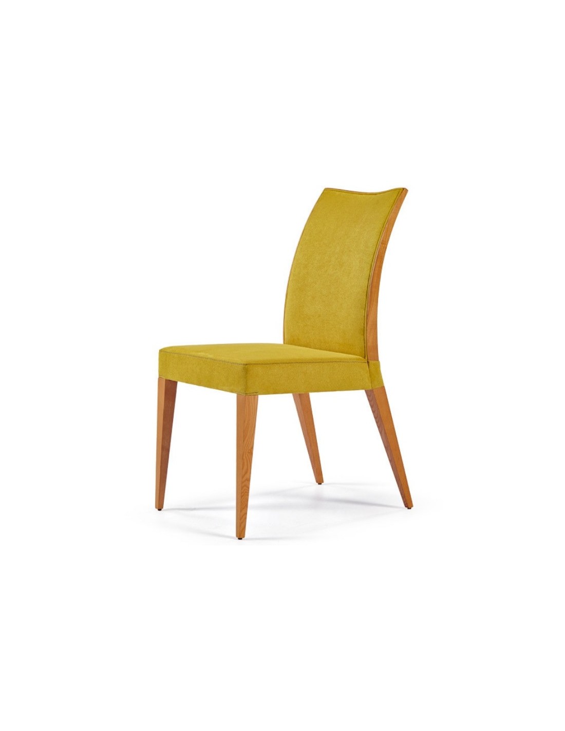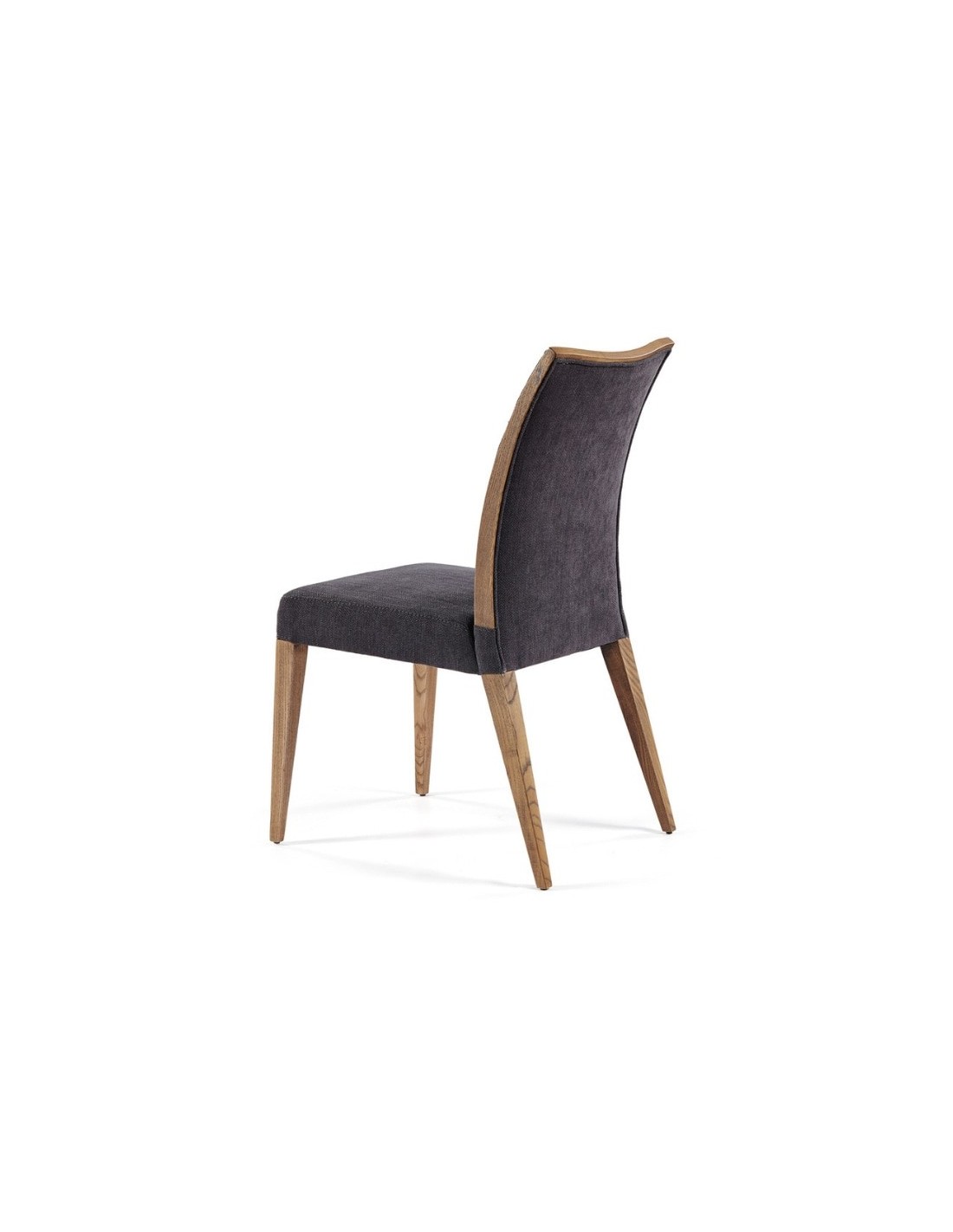 Καρέκλα που συνδυάζει υλικά και το ύφασμα αφήνει στις άκρες του ακάλυπτο το ξύλο, δίνοντας ακόμα πιο εντυπωσιακό αποτέλεσμα.