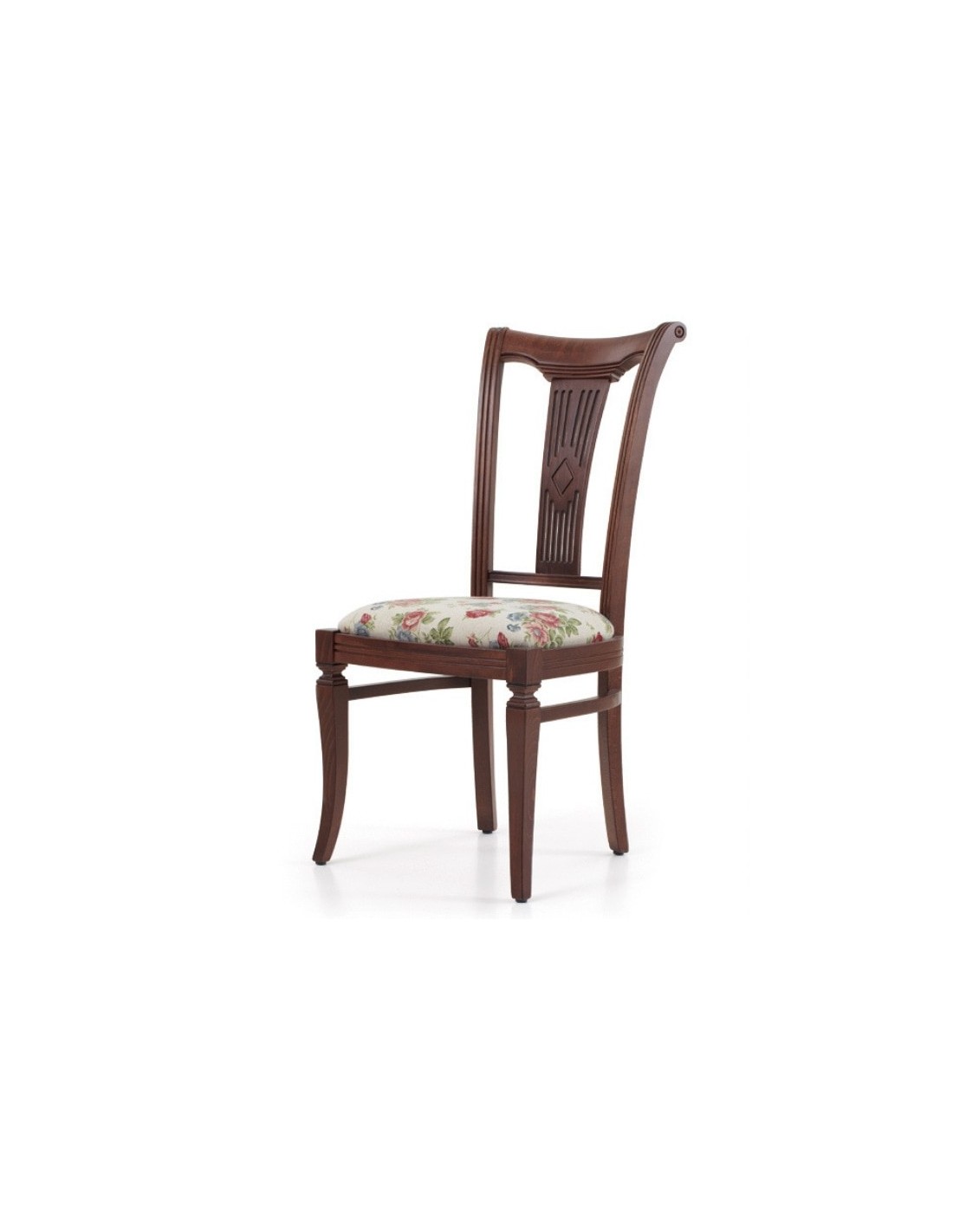 Καρέκλα κομψή με σχέδια στην πλάτη της, η οποία ταιριάζει σε πιο κλασικούς και vintage χώρους.