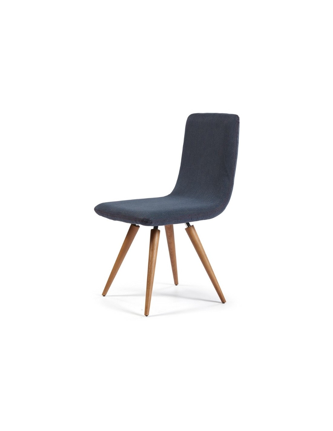 Καρέκλα με 60s διάθεση, η οποία βασίζεται στα πλαγιαστά στρογγυλά πόδια στήριξης.