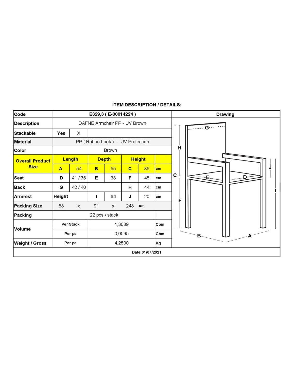 DAFNE Πολυθρόνα Τραπεζαρίας Κήπου Στοιβαζόμενη, PP Rattan Look UV Protection, Καφέ