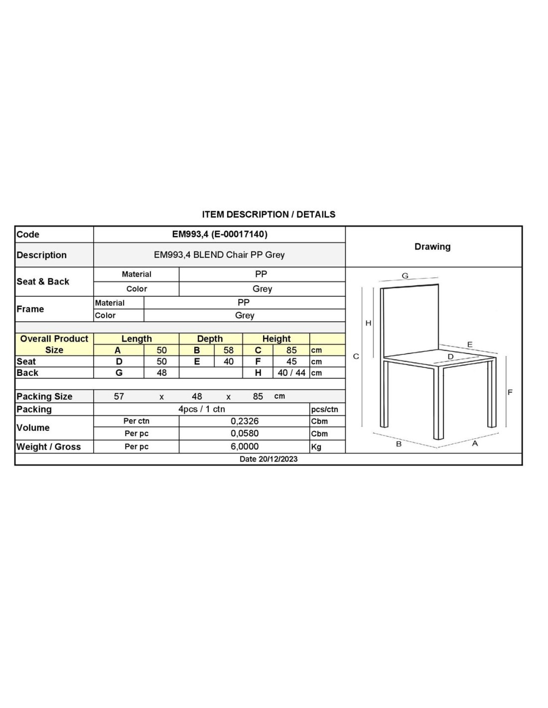 BLEND Καρέκλα Τραπεζαρίας Κουζίνας - PP Γκρι