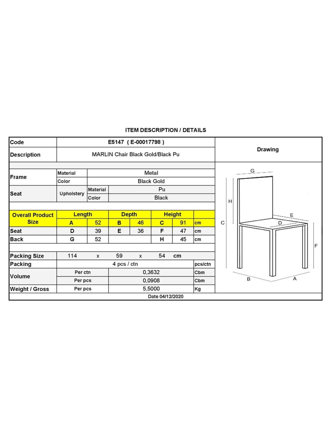 MARLIN Καρέκλα Τραπεζαρίας Μέταλλο Βαφή Black Gold, PU Μαύρο