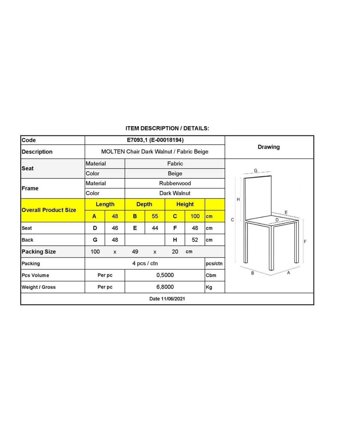 MOLTEN Καρέκλα Καρυδί, Ύφασμα Μπεζ