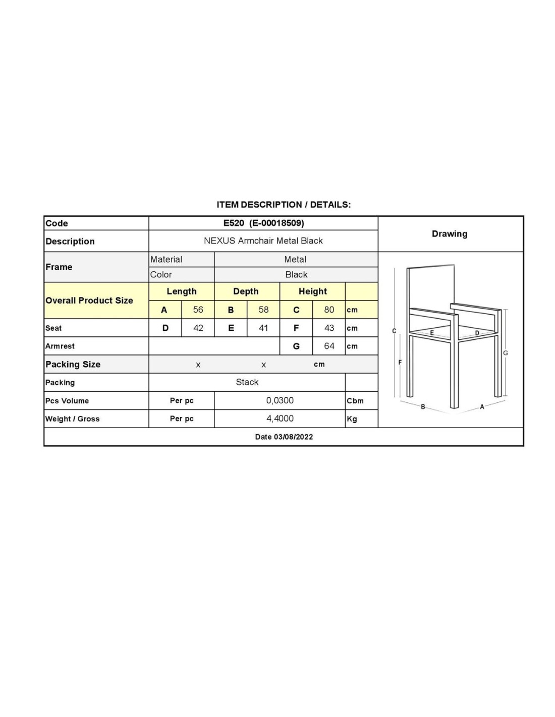 NEXUS Πολυθρόνα Κήπου Βεράντας, Μέταλλο Βαφή Μαύρο, Στοιβαζόμενη