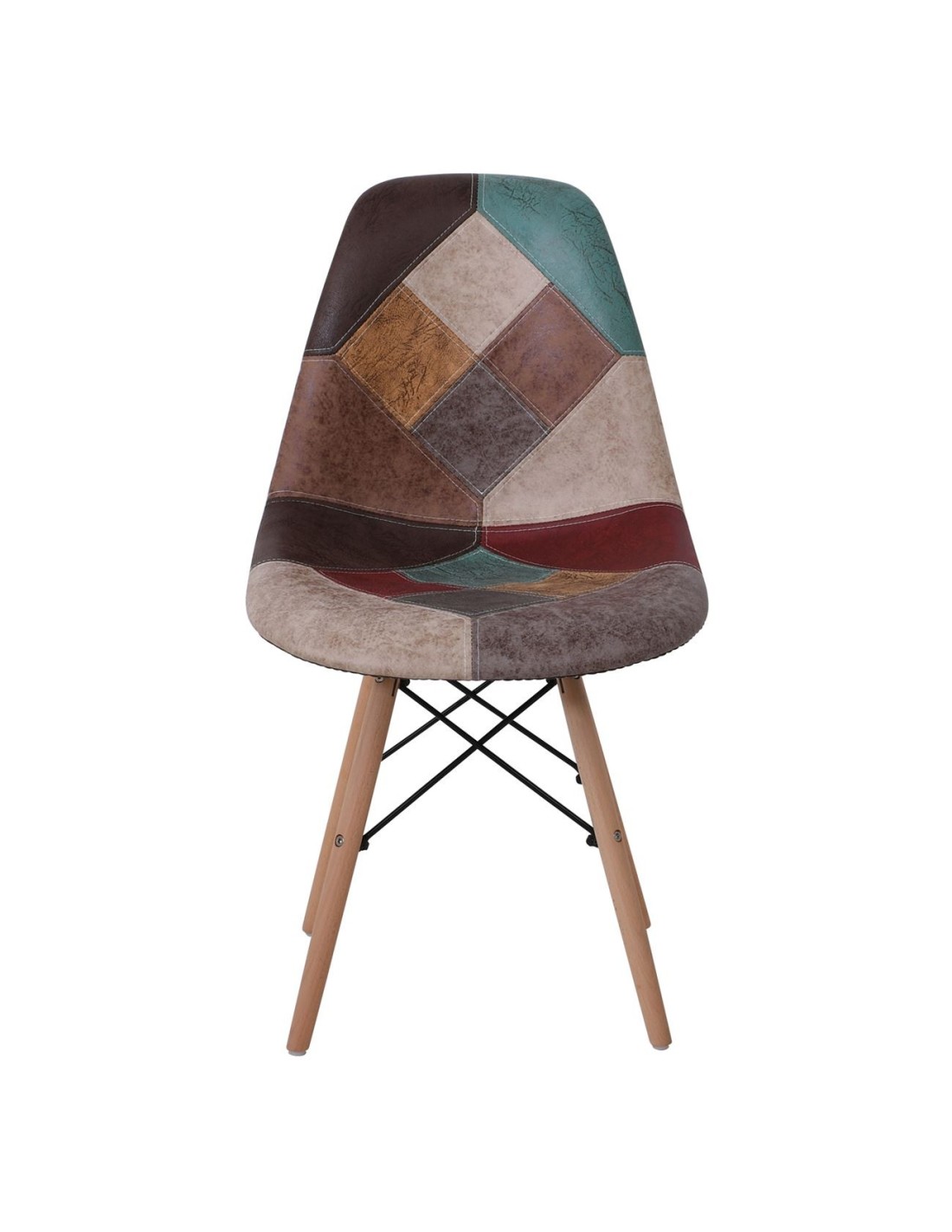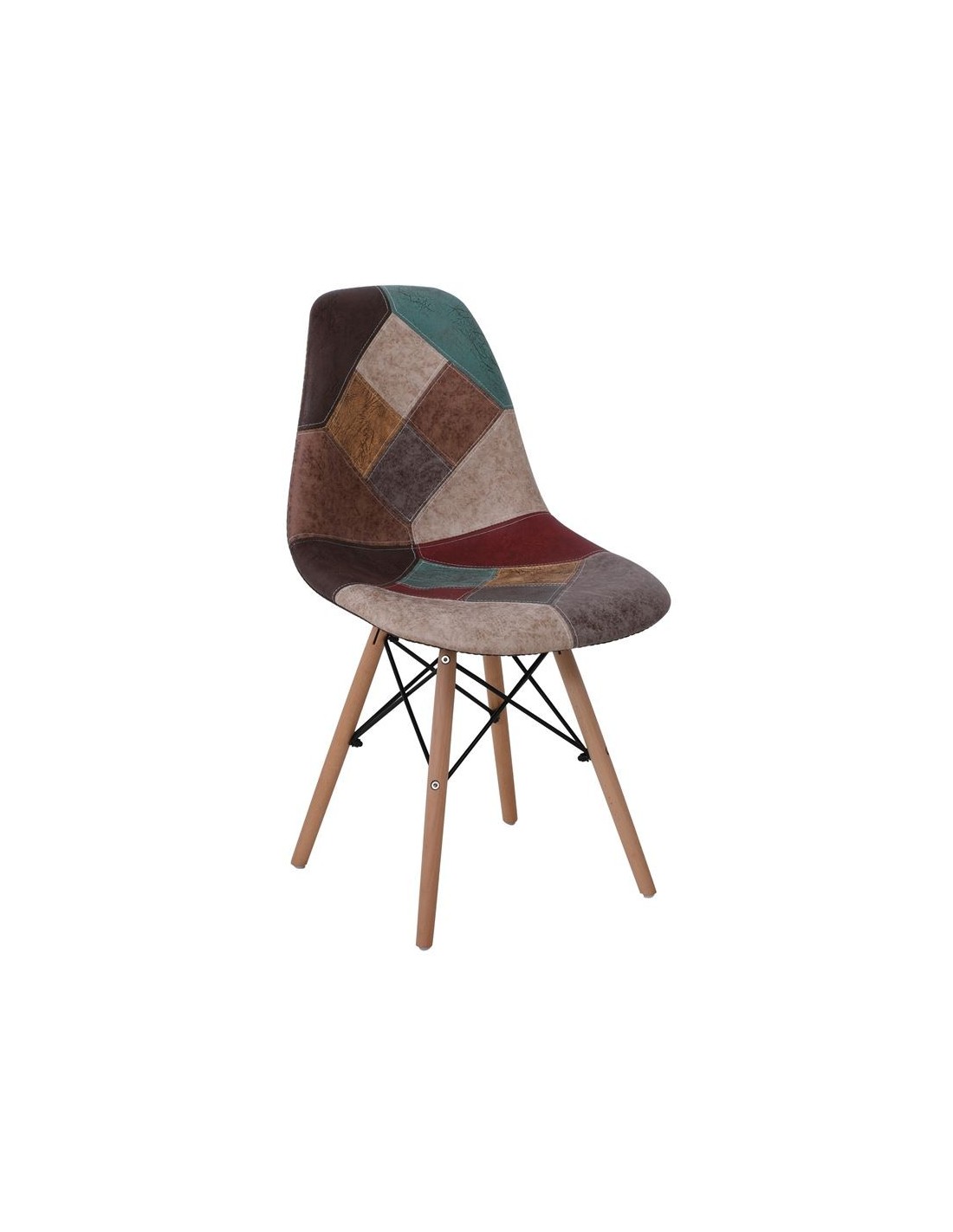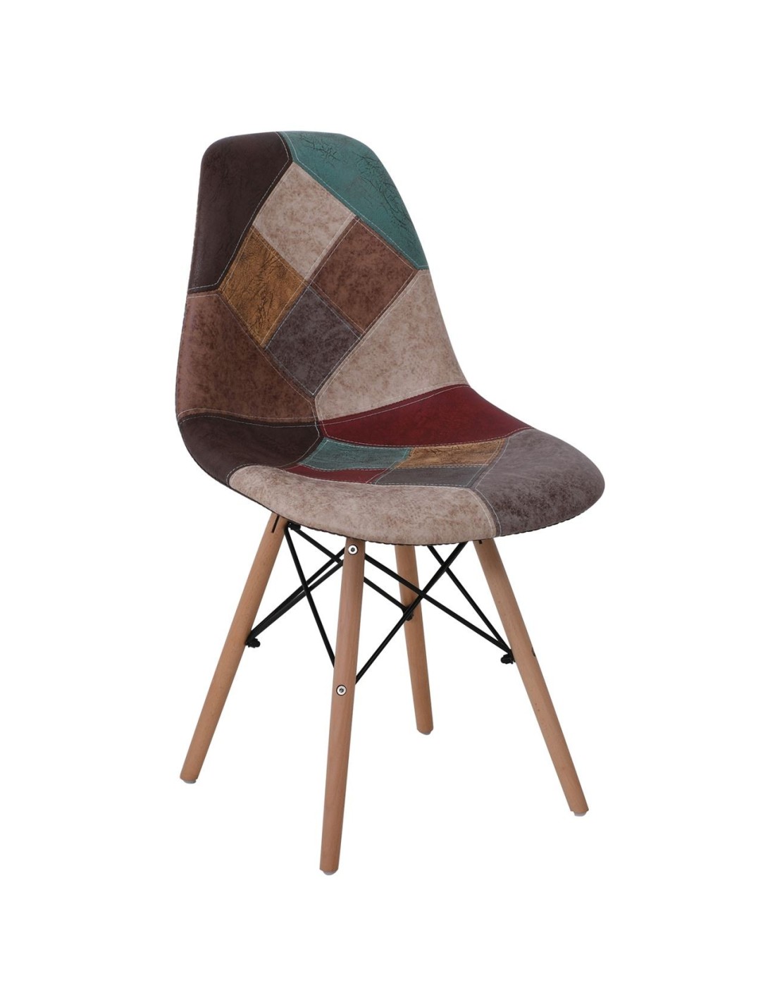 ART Wood Καρέκλα Τραπεζαρίας, Πόδια Οξιά, Κάθισμα PP με Ύφασμα Patchwork Καφέ