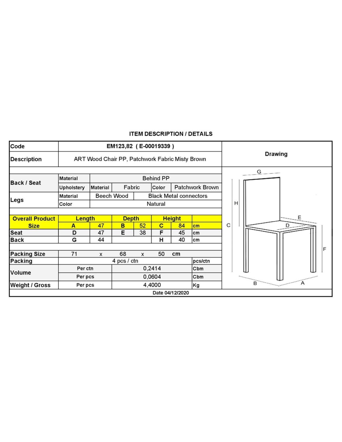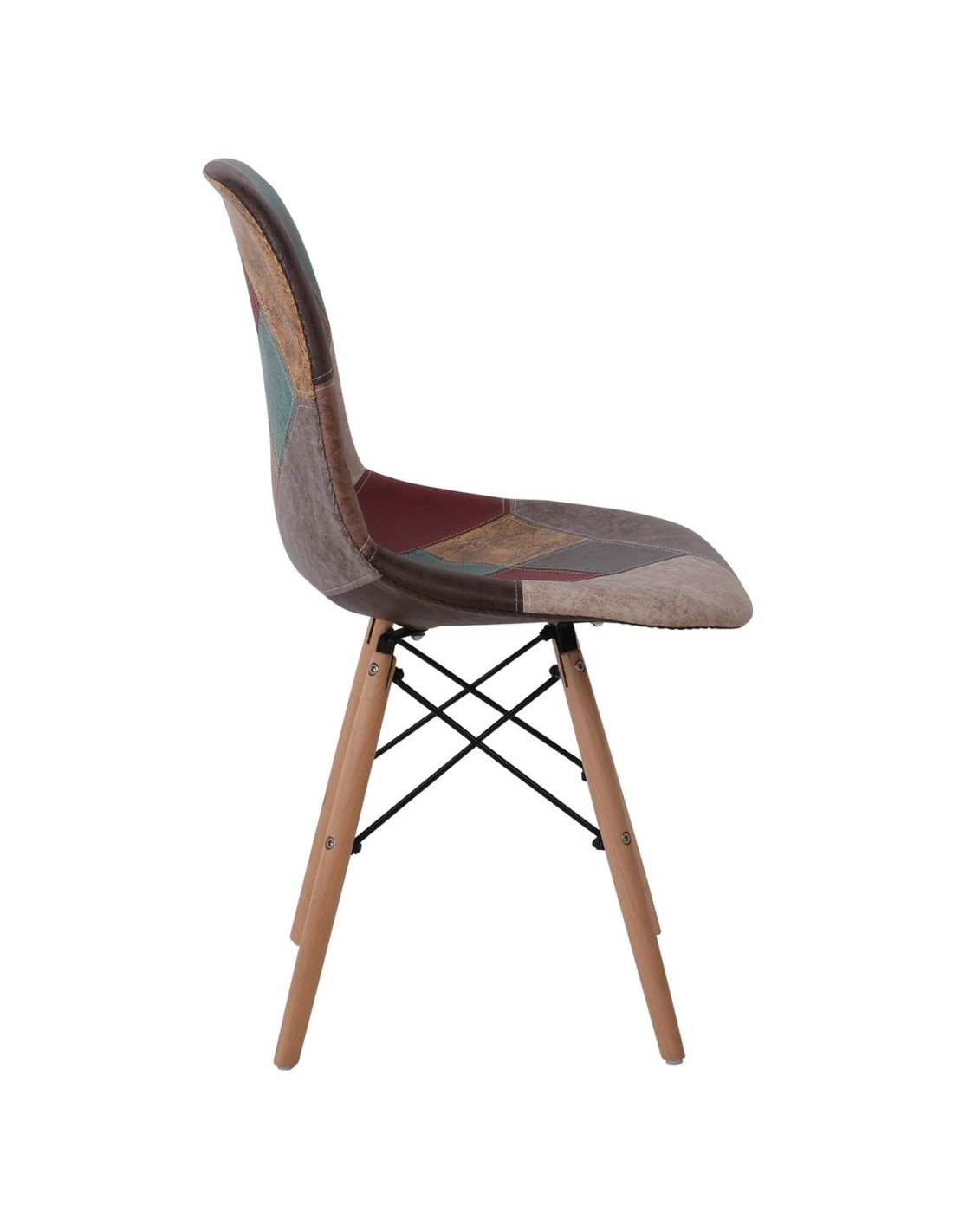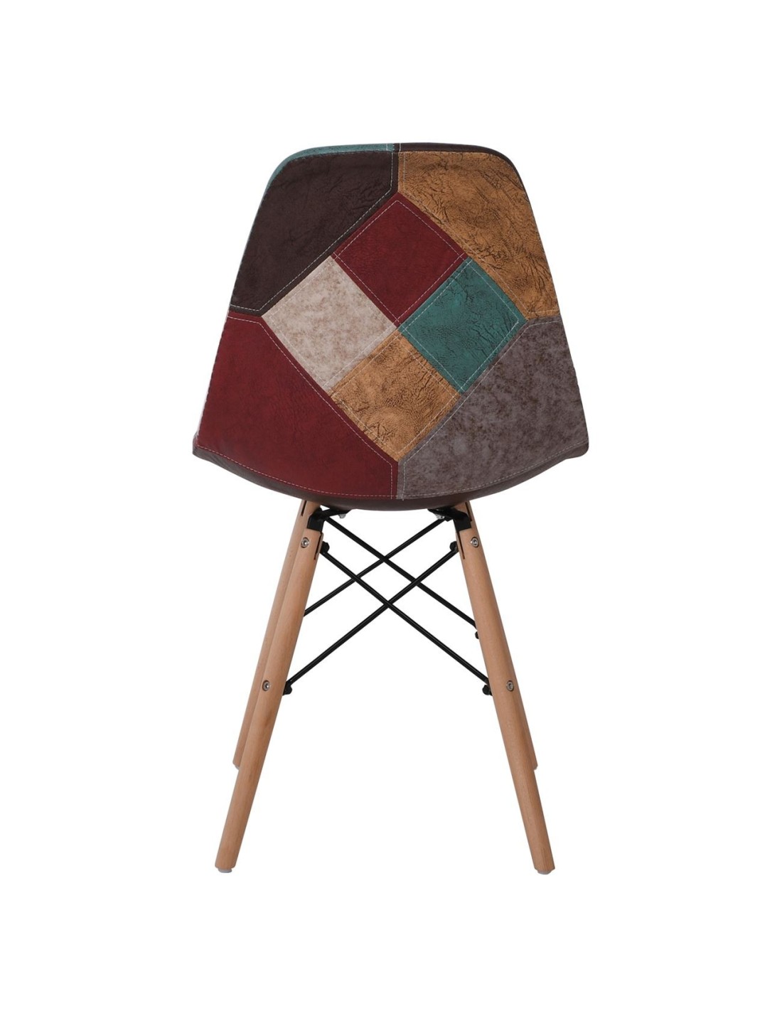 ART Wood Καρέκλα Τραπεζαρίας, Πόδια Οξιά, Κάθισμα PP με Ύφασμα Patchwork Καφέ