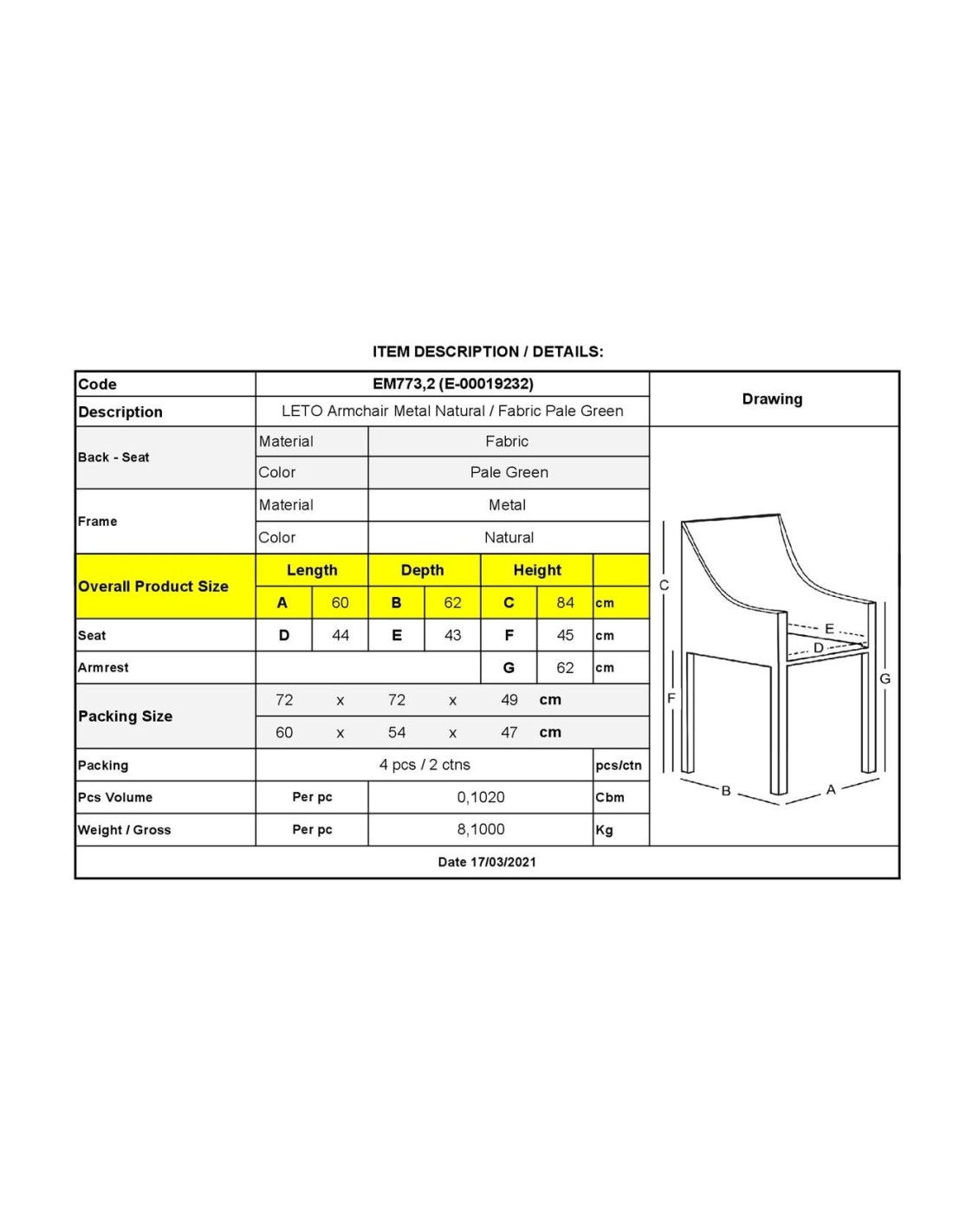 LETO Πολυθρόνα Τραπεζαρίας Κουζίνας, Μέταλλο Βαφή Φυσικό, Ύφασμα Βεραμάν
