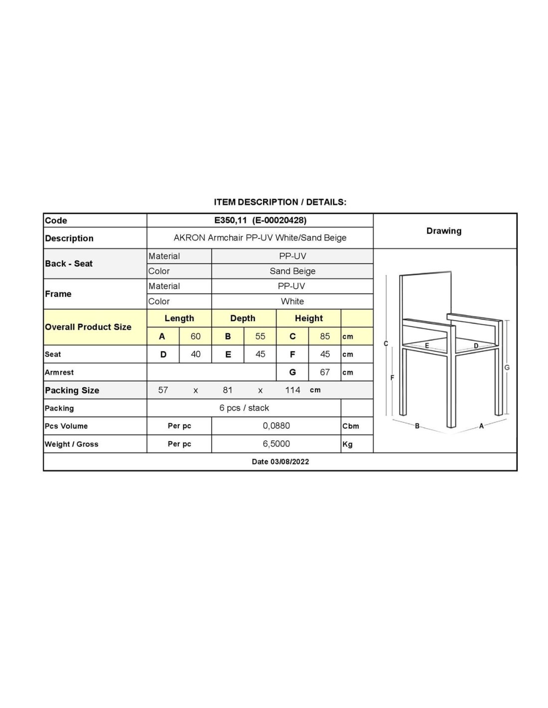 AKRON Πολυθρόνα PP-UV Άσπρο - Sand Beige