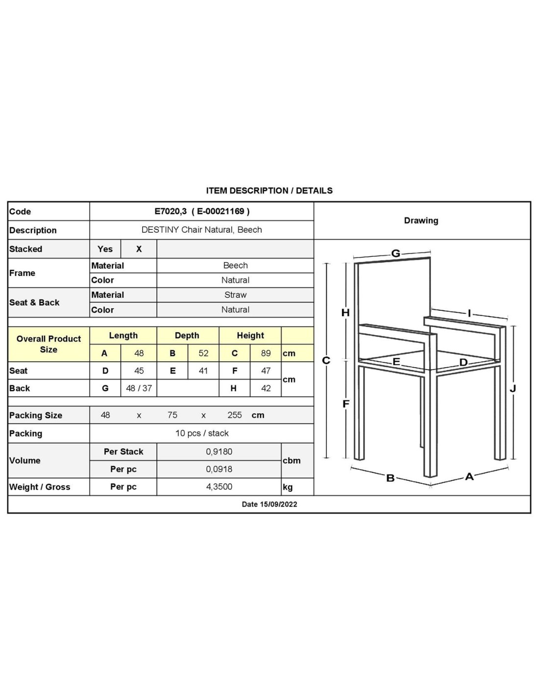 DESTINY Καρέκλα Τραπεζαρίας Οξιά Φυσικό, Κάθισμα Ψάθα, Στοιβαζόμενη
