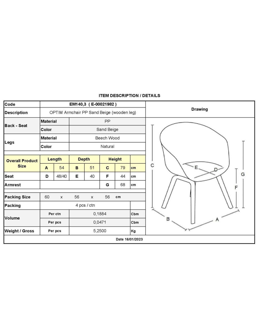 OPTIM Πολυθρόνα Ξύλινο Πόδι Οξιά Φυσικό, PP Sand Beige