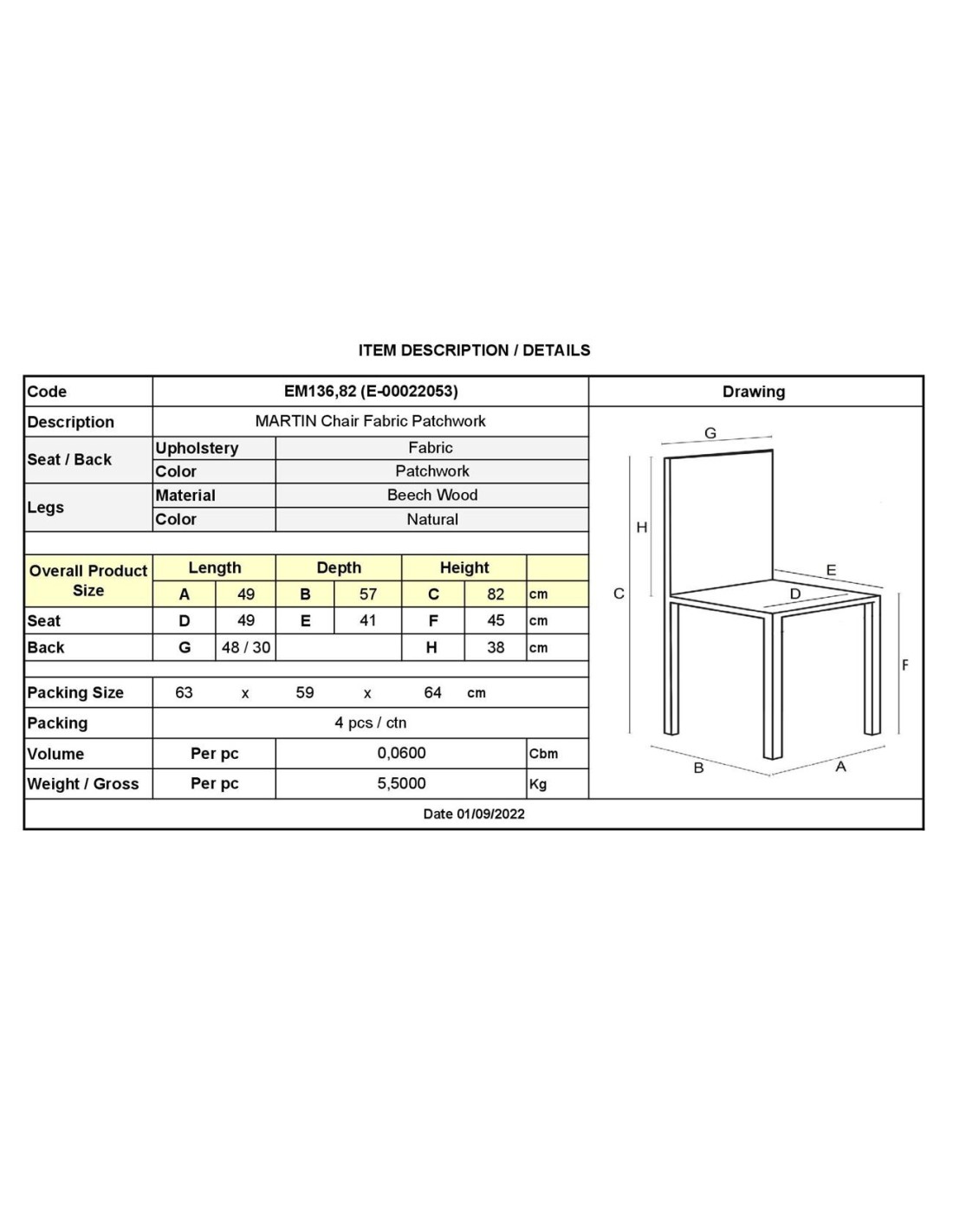 MARTIN Καρέκλα Ξύλο PP, Ύφασμα Patchwork