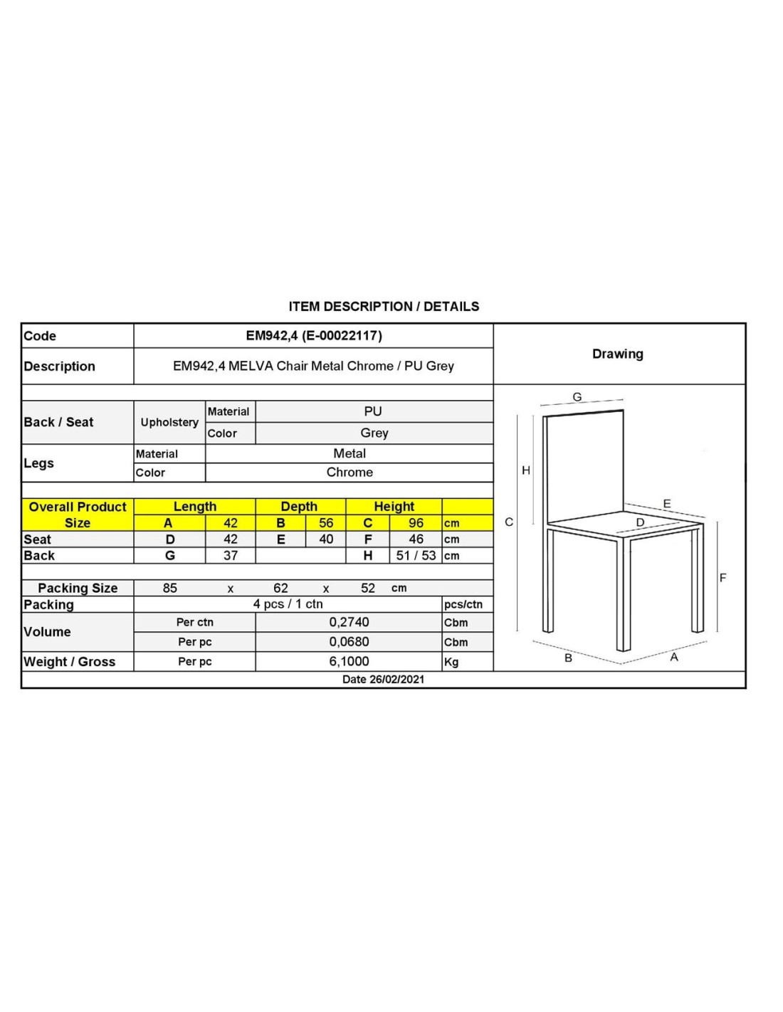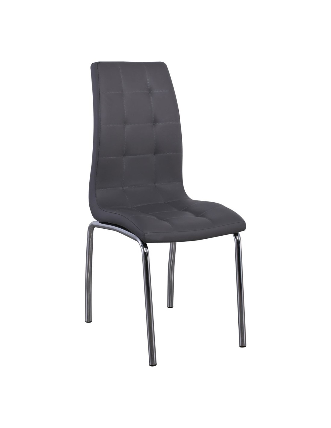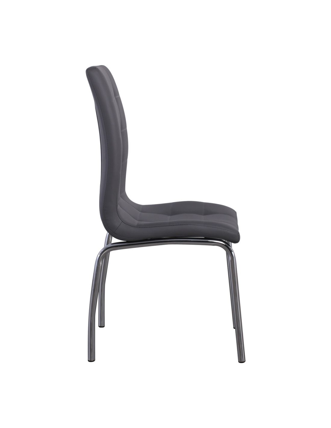 MELVA Καρέκλα Τραπεζαρίας - Κουζίνας, Μέταλλο Χρώμιο, PU Γκρι