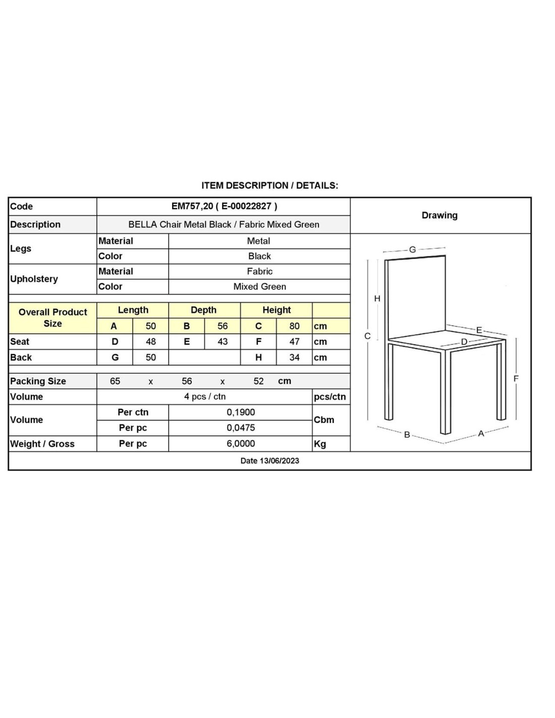 BELLA Καρέκλα Τραπεζαρίας, Μέταλλο Βαφή Μαύρο, Ύφασμα Απόχρωση Mixed Green