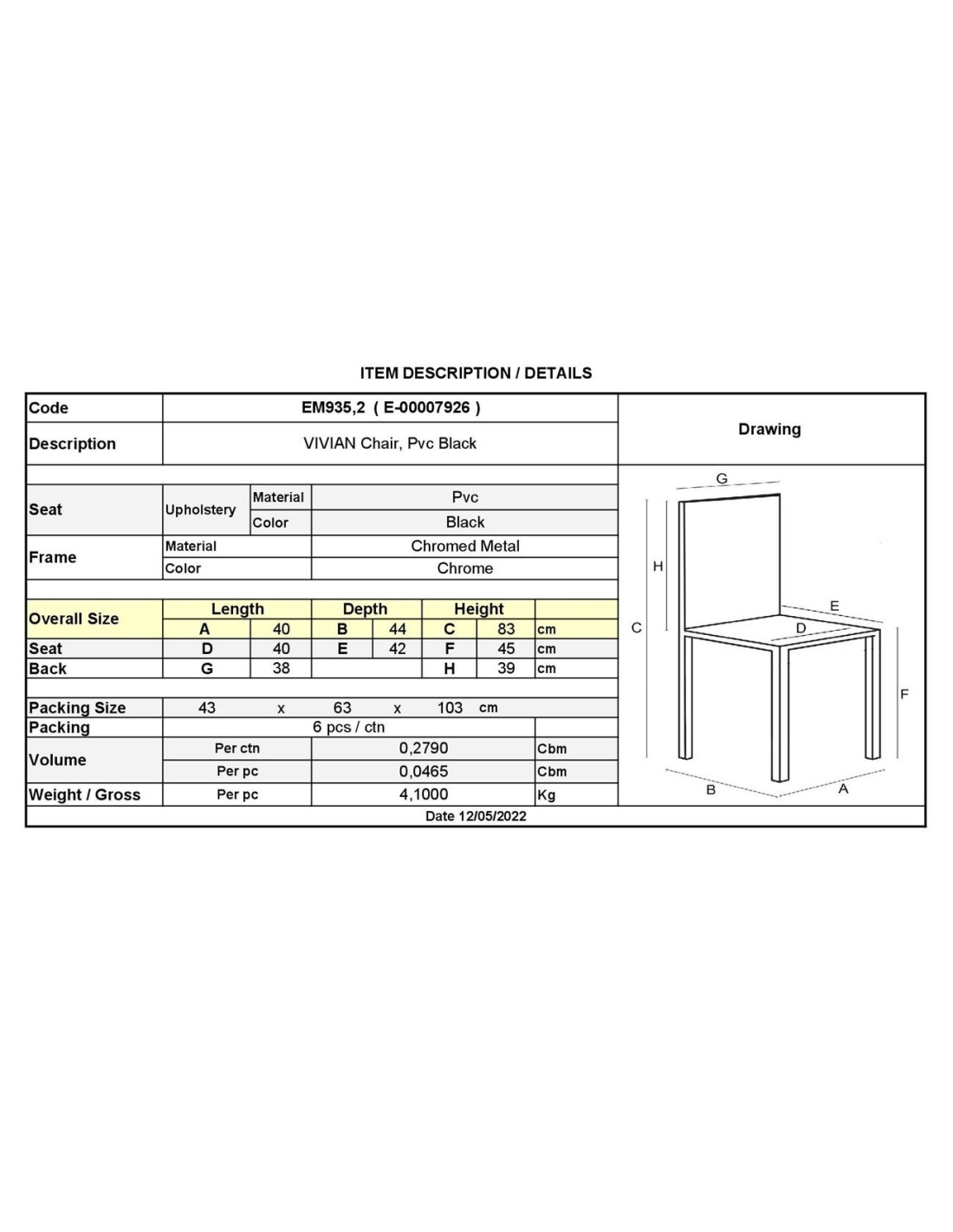 VIVIAN Καρέκλα Μέταλλο Χρώμιο, ΡVC Μαύρο