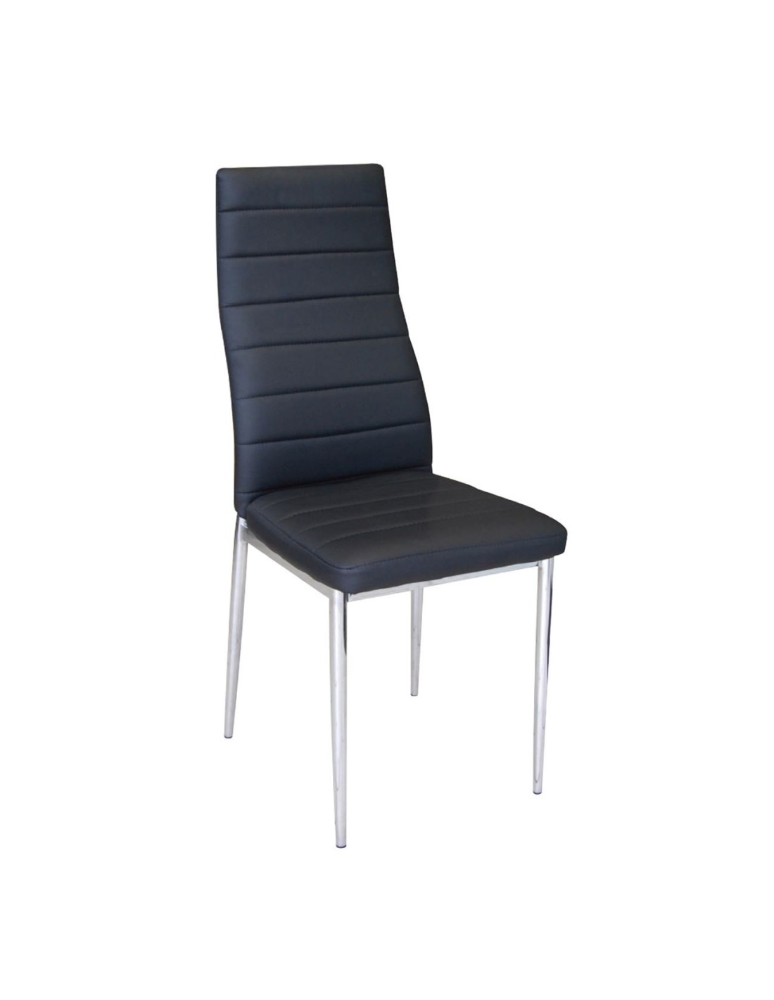 JETTA Καρέκλα Τραπεζαρίας Κουζίνας, Μέταλλο Χρώμιο, Pvc Μαύρο (Συσκ.6)