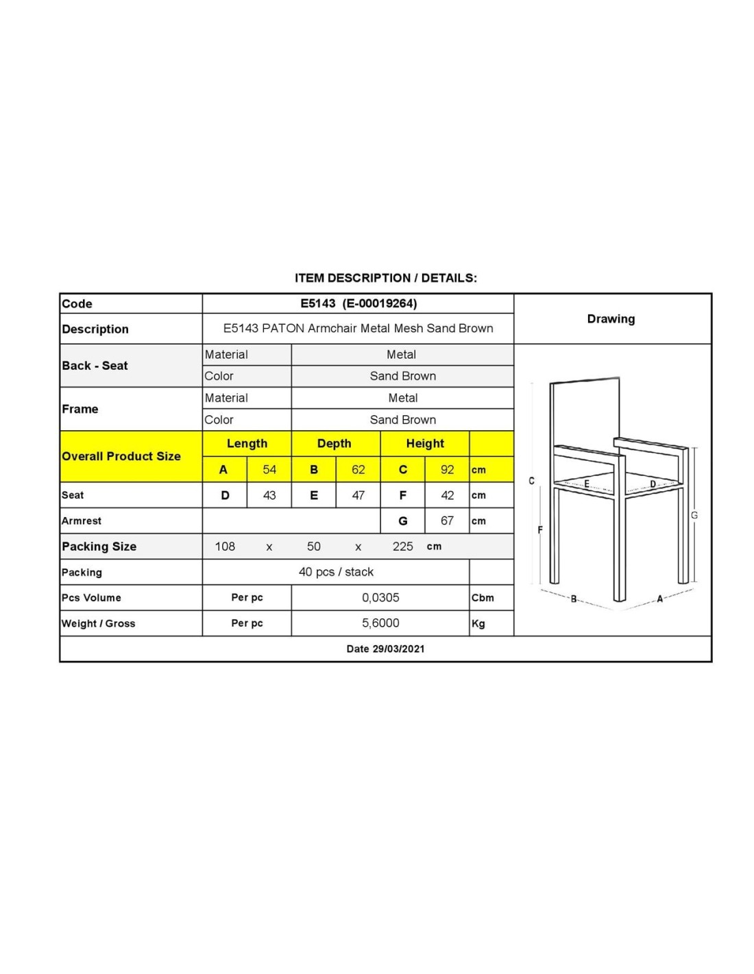 PATON Πολυθρόνα Κήπου Βεράντας, Μέταλλο Βαφή Sand Brown Mesh - Στοιβαζόμενη