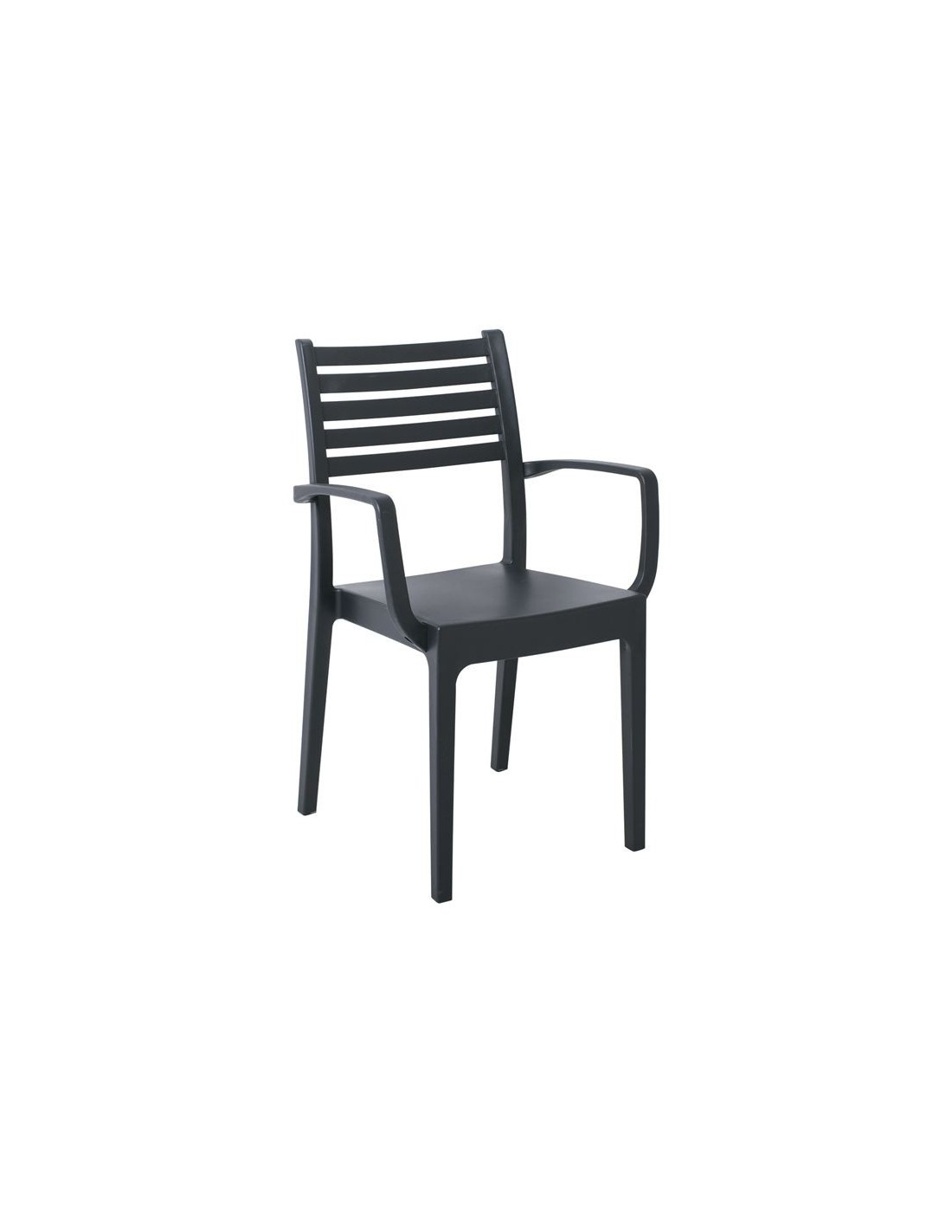 OLIMPIA Πολυθρόνα Τραπεζαρίας Κήπου Στοιβαζόμενη, PP - UV Protection, Απόχρωση Ανθρακί