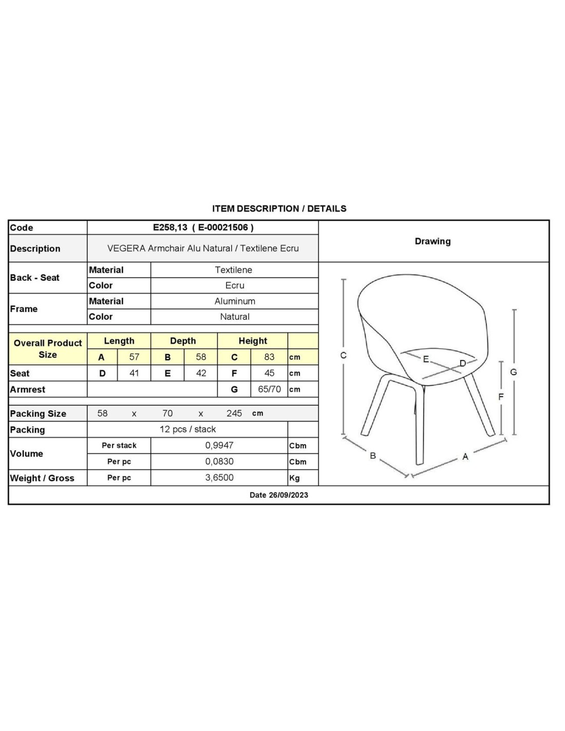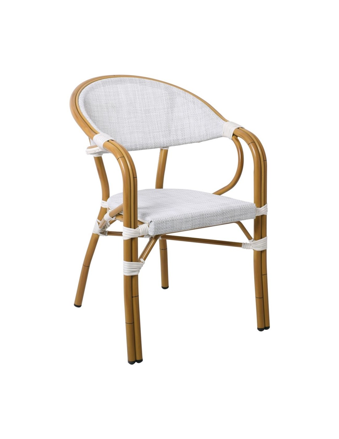 VEGERA Πολυθρόνα Dining Αλουμίνιο Βαφή Φυσικό Textilene Εκρού, Στοιβαζόμενη