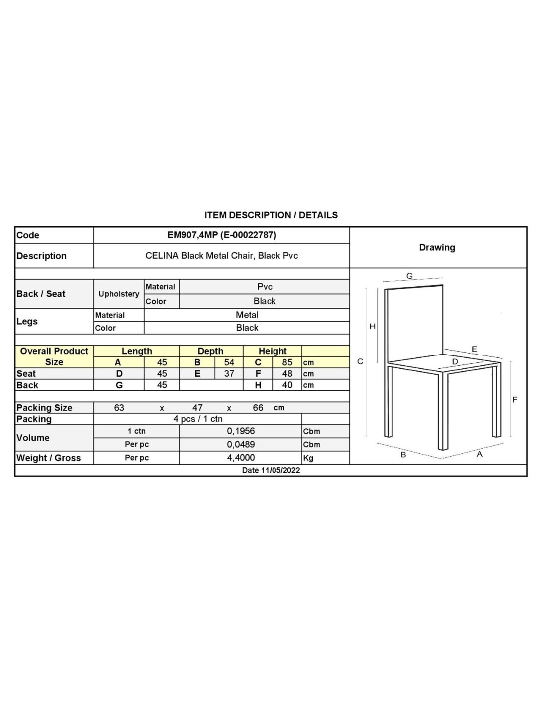 CELINA Καρέκλα Μέταλλο Βαφή Μαύρo, Pvc Μαύρο