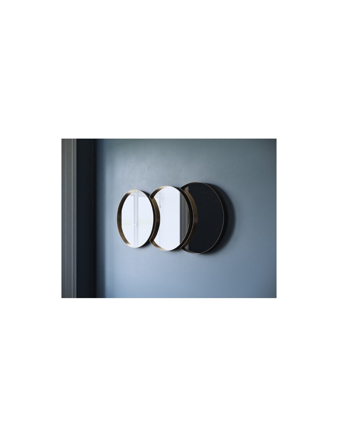 Τριλογία επιτοίχιων καθρεφτών με μεταλλικό πλαίσιο σε διαφορετικά σχήματα.