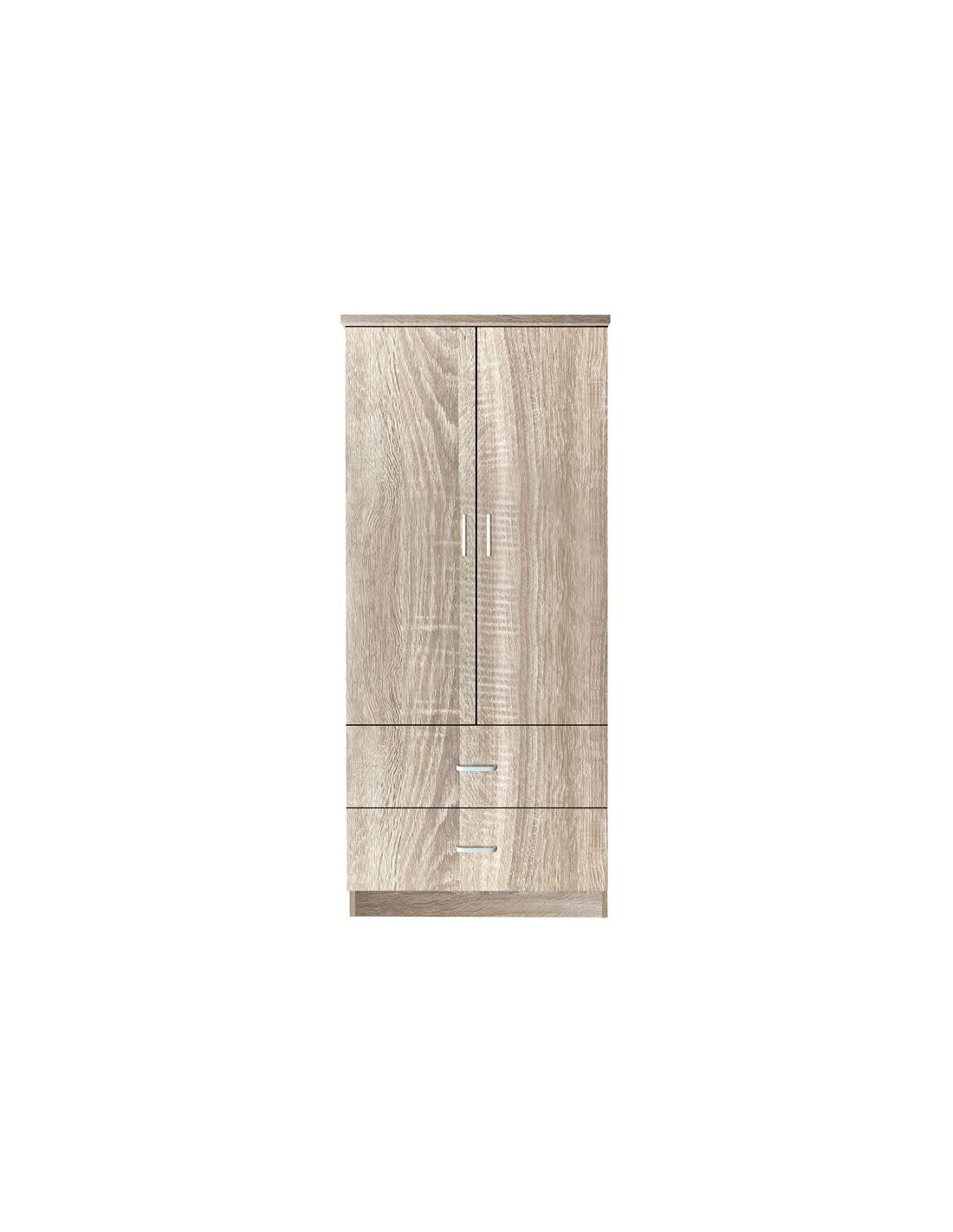 CLOSET Ντουλάπα Δίφυλλη, Ράφι, Θέσεις για Κρεμάστρες, 2 Συρτάρια, Απόχρωση Sonoma