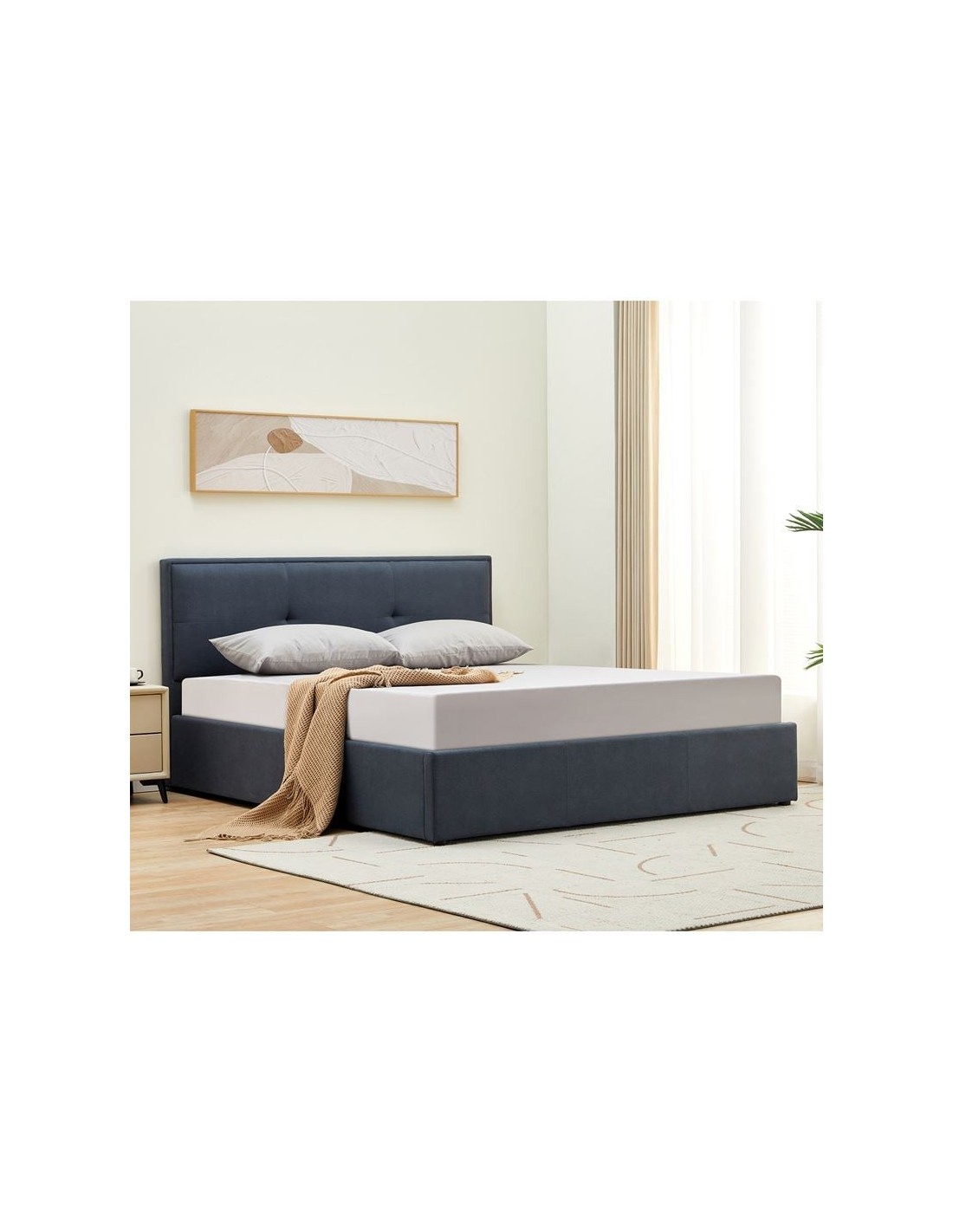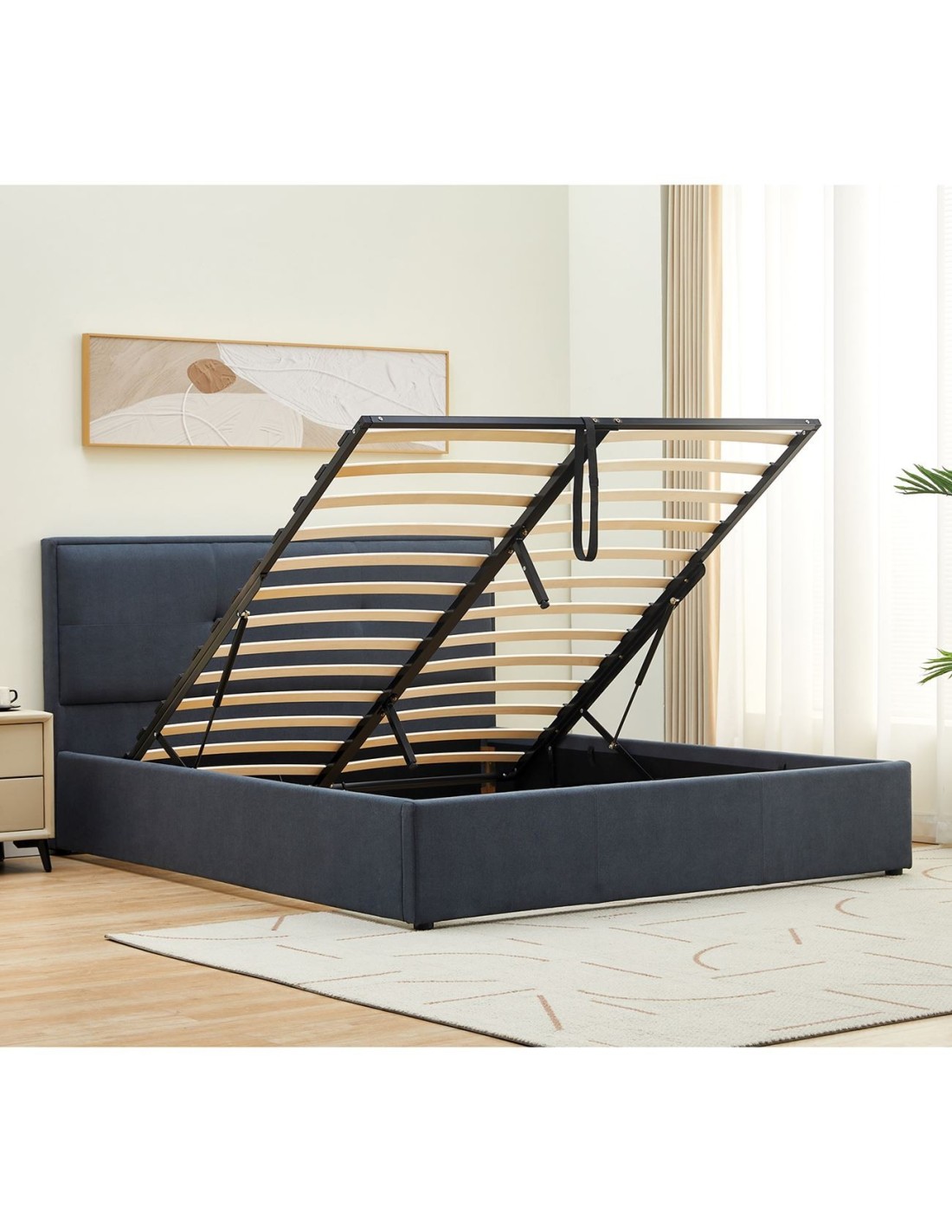 WALTER Κρεβάτι Διπλό με Χώρο Αποθήκευσης, για Στρώμα 150x200cm, Ύφασμα Γκρι