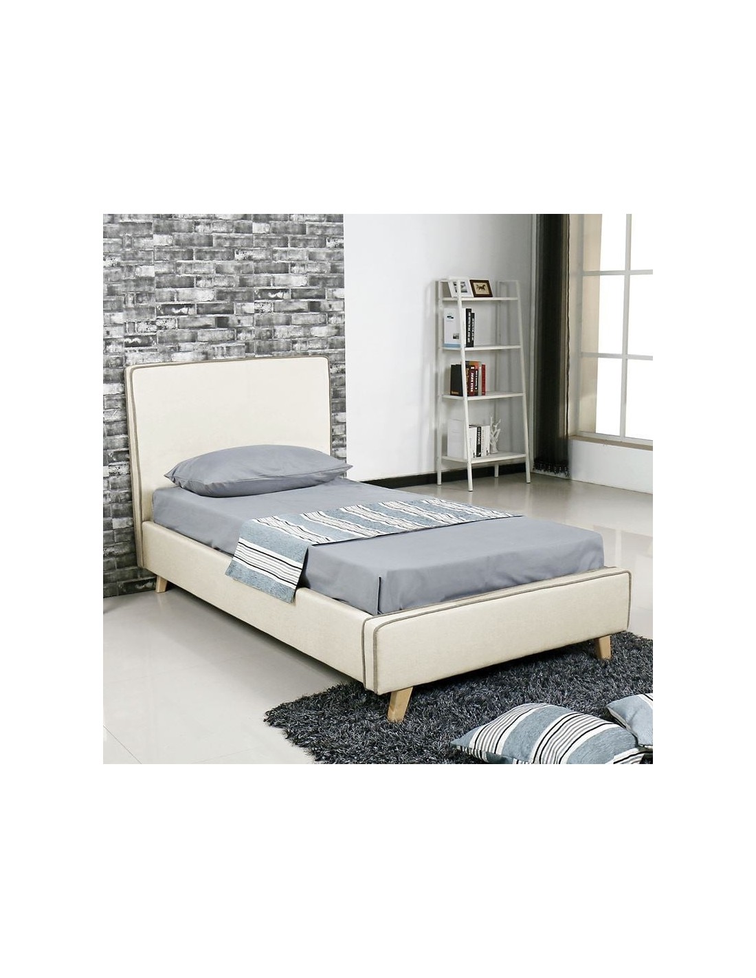 MORISSON Κρεβάτι Μονό, για Στρώμα 90x190cm, Ύφασμα Εκρού