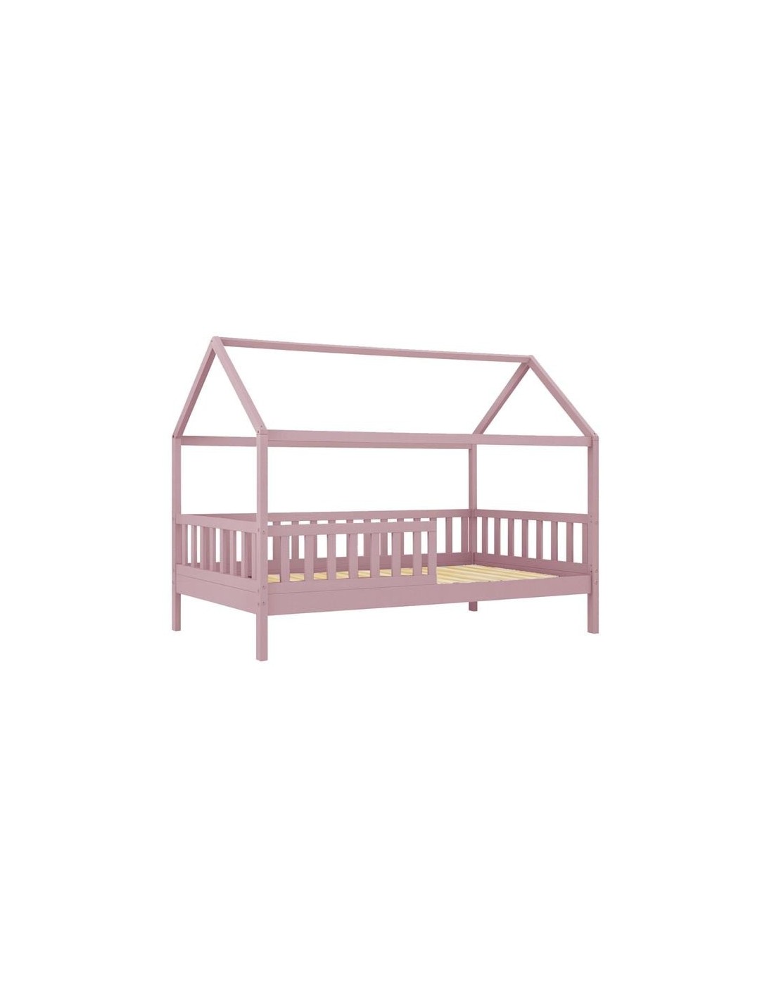 DREAM Montessori Παιδικό Κρεβάτι, για Στρώμα 90x190cm, Ξύλο Πεύκου Απόχρωση Ροζ