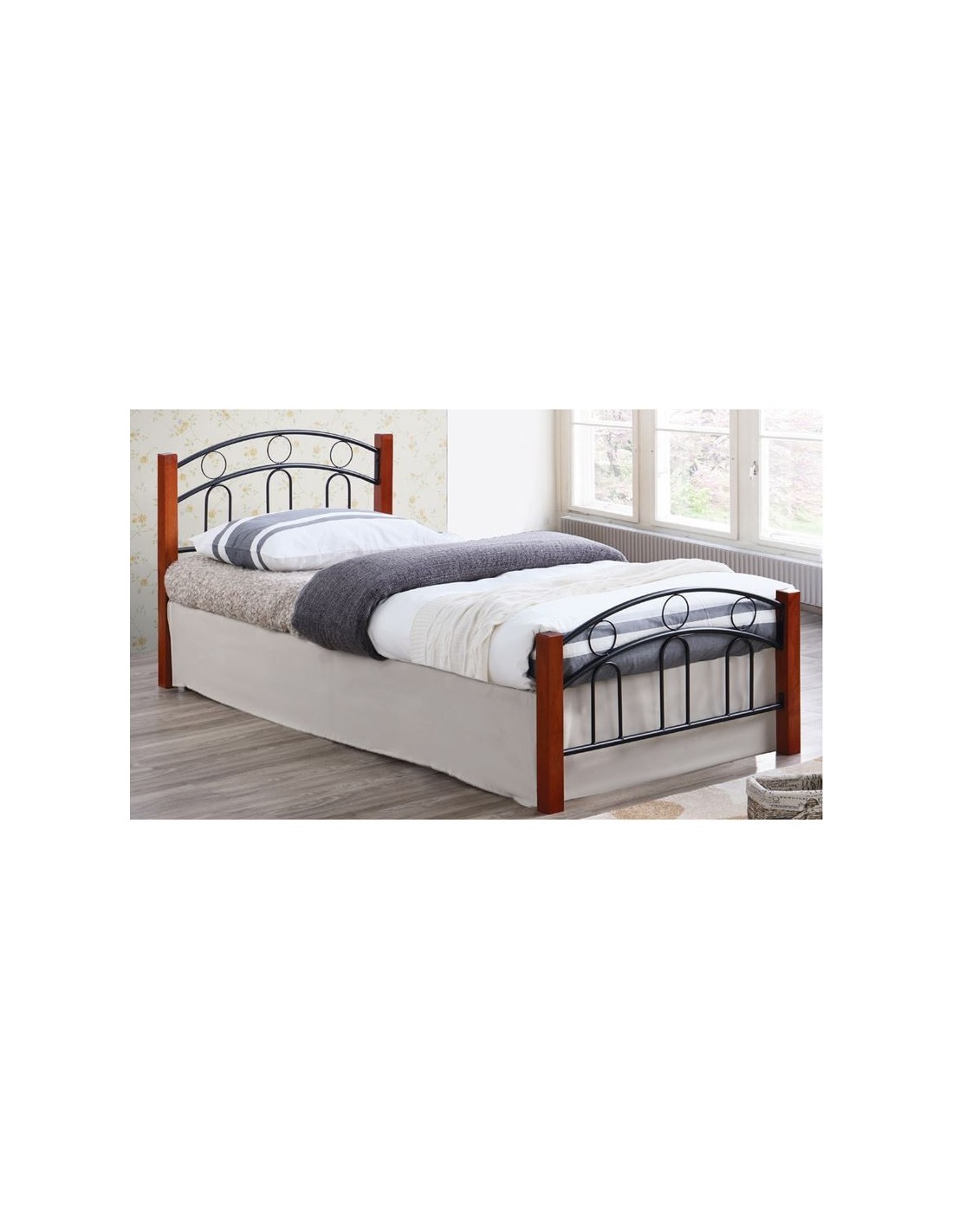 NORTON Κρεβάτι Διπλό, για Στρώμα 160x200cm, Μέταλλο Βαφή Μαύρο, Ξύλο Καρυδί