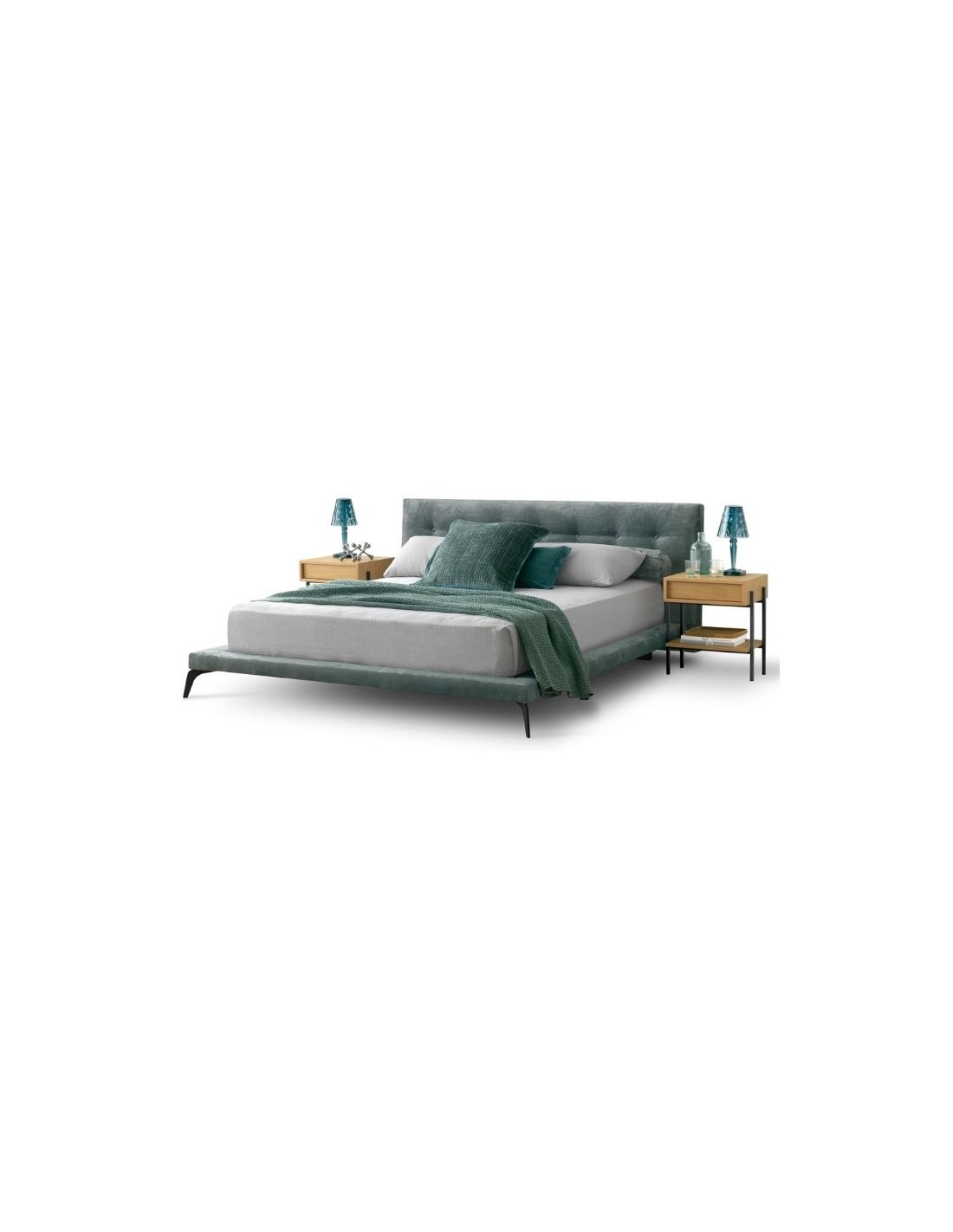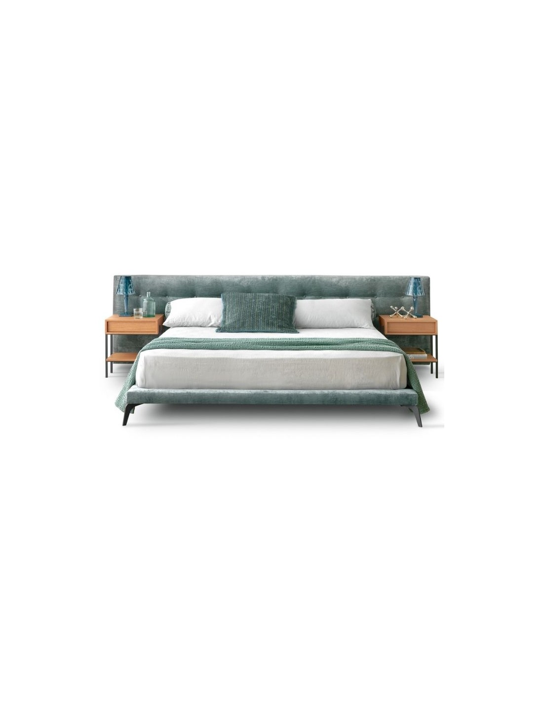 Υφασμάτινο κρεβάτι με μεταλλικά πόδια και καπιτονέ κεφαλάρι σε μεγάλη ποικιλία χρωμάτων και υφασμάτων.