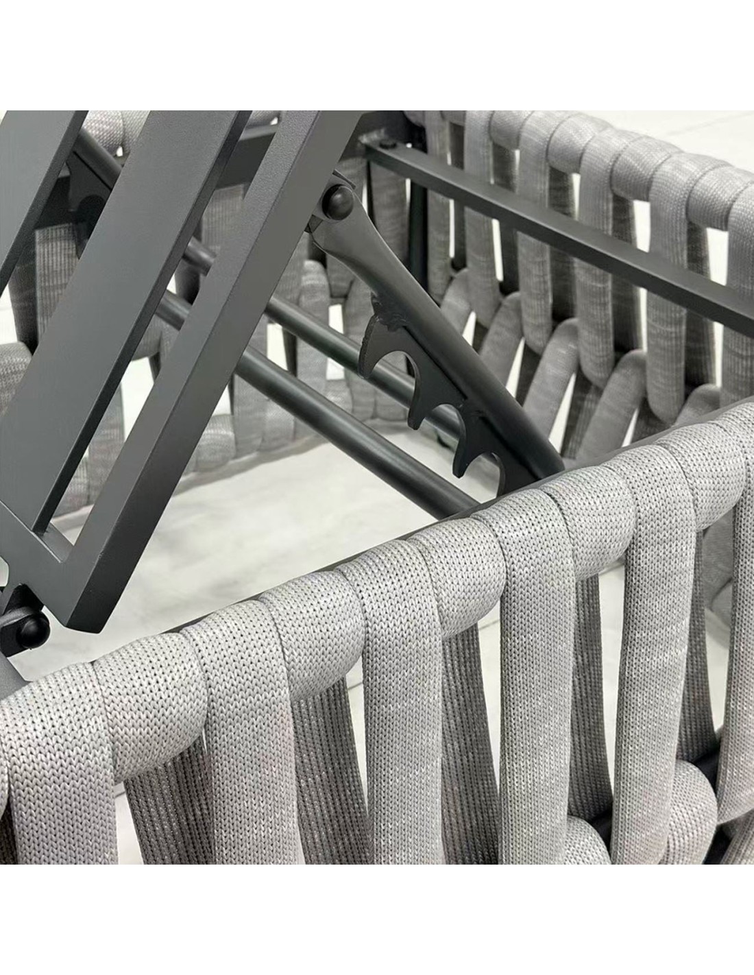 MAJORCA Ξαπλώστρα, Αλουμίνιο με Olefin Rope Γκρι, Μαξιλάρι Ανοιχτό Γκρι