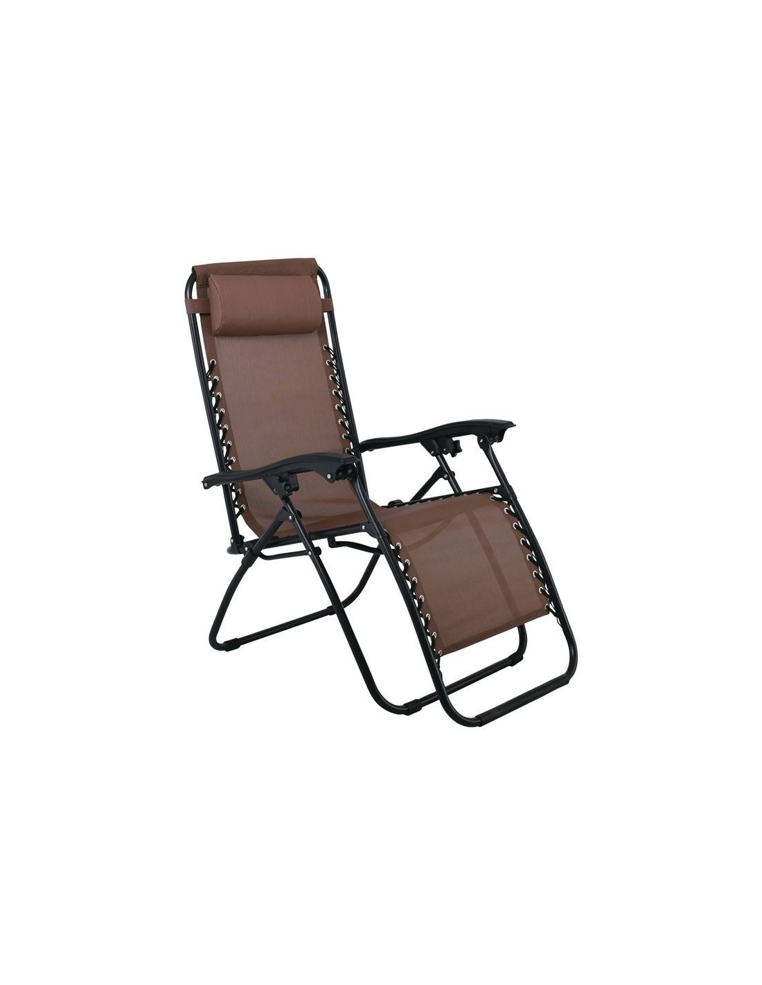 SUPER RELAX Πολυθρόνα με Υποπόδιο, Μέταλλο Βαφή Μαύρο, Textilene Καφέ