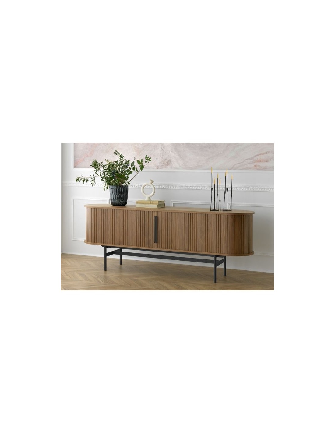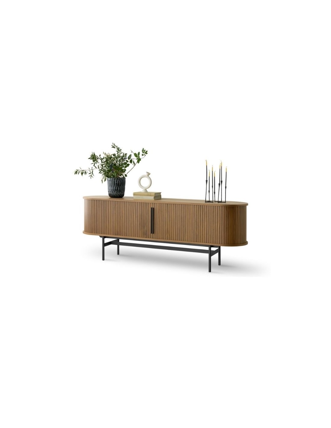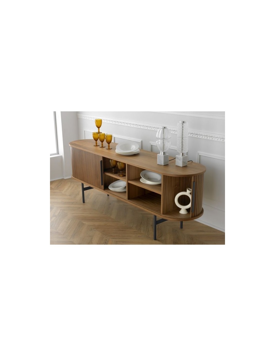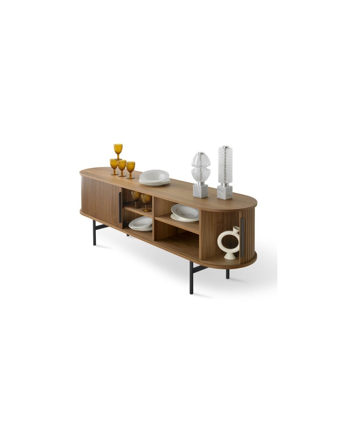 Μπουφές της σειράς Quinta σε καρυδιά ή δρυ, με μεταλλική βάση και με περιμετρικό συρόμενο roller.