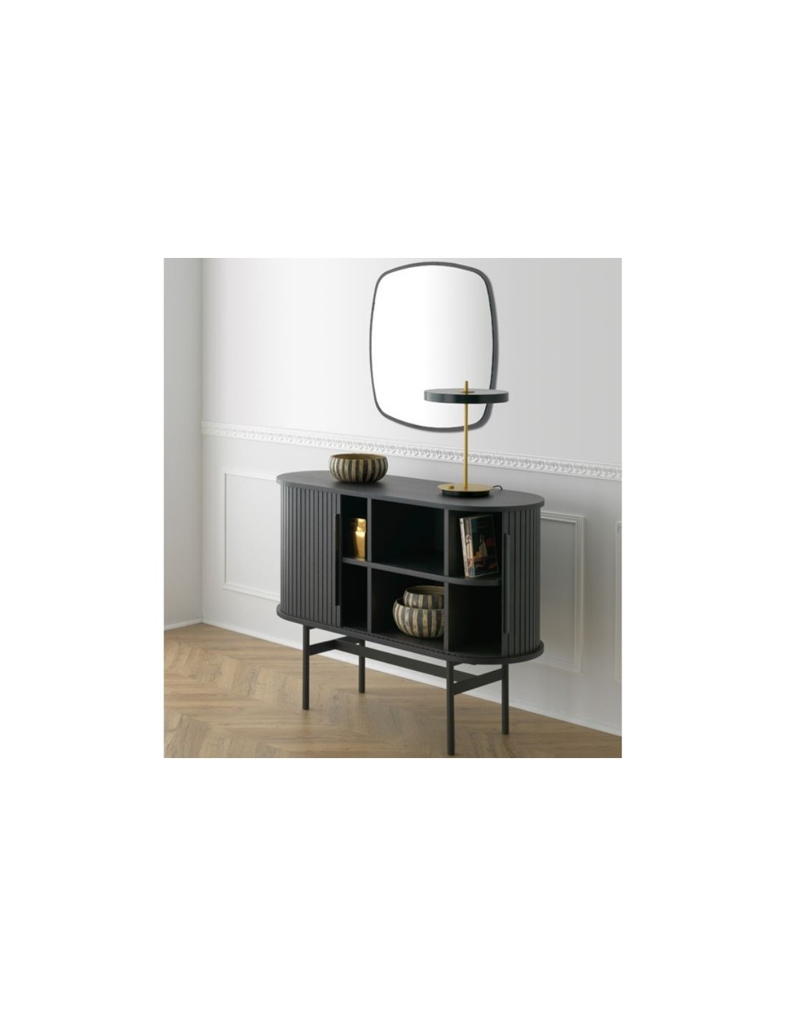 Μπουφές μικρός της σειράς Quinta σε καρυδιά ή δρυ, με μεταλλική βάση και με περιμετρικό συρόμενο roller.