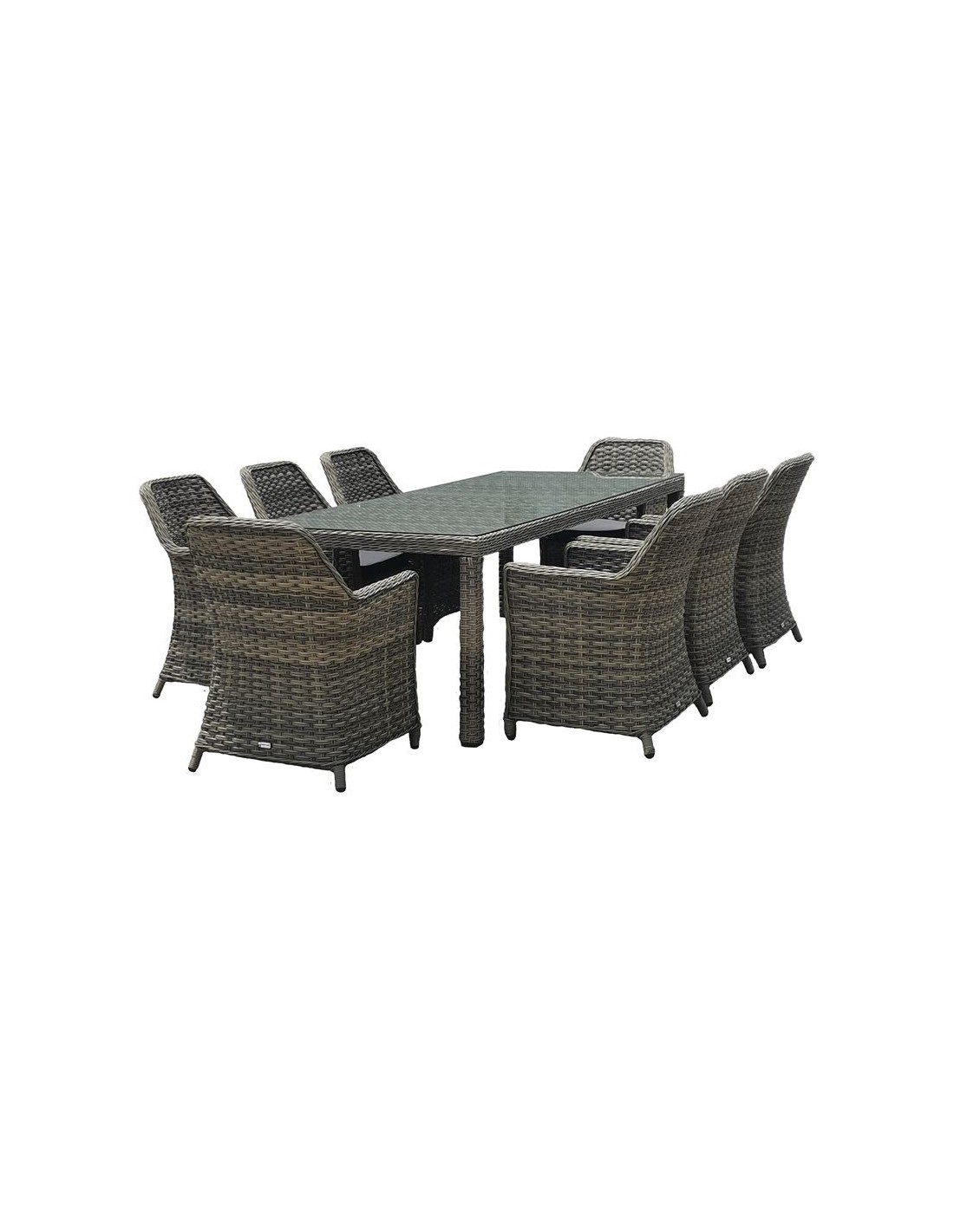ESPERIA Set Τραπεζαρία Κήπου ALU,Wicker Grey Brown-Ανθρακί: Τραπέζι 230x100 + 8 Πολυθρόνες