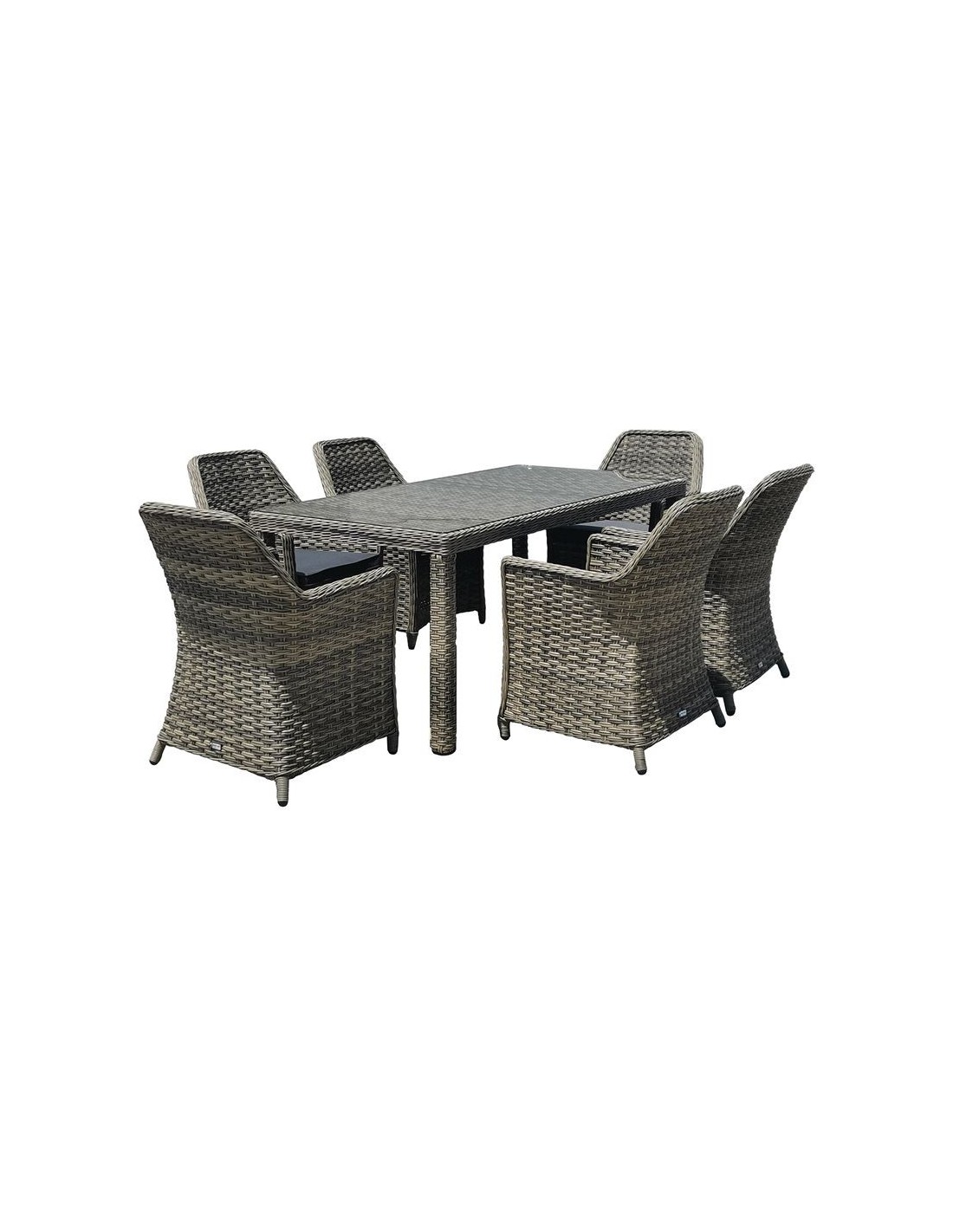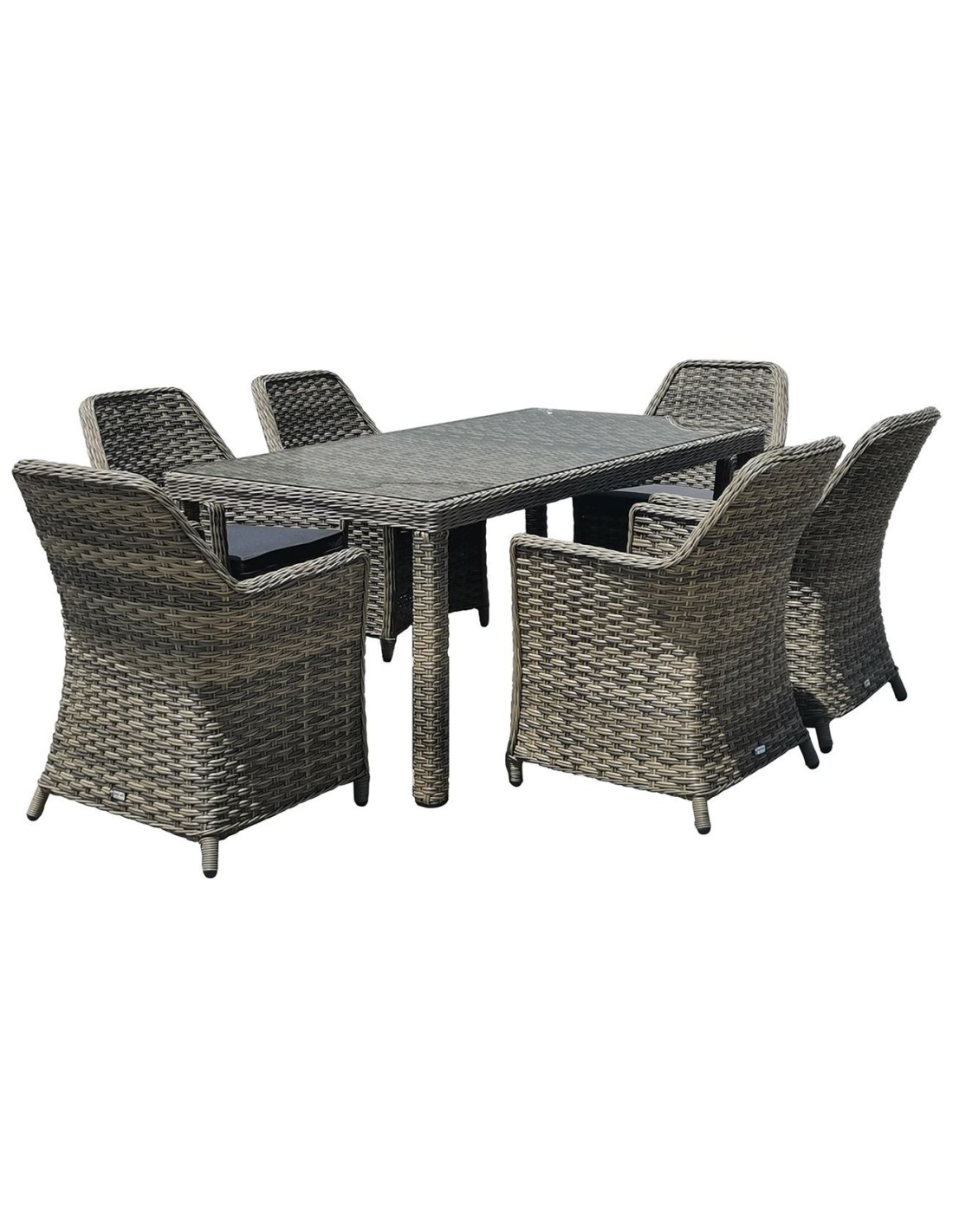 ESPERIA Set Τραπεζαρία Κήπου ALU,Wicker Grey Brown-Ανθρακί: Τραπέζι 180x90 + 6 Πολυθρόνες